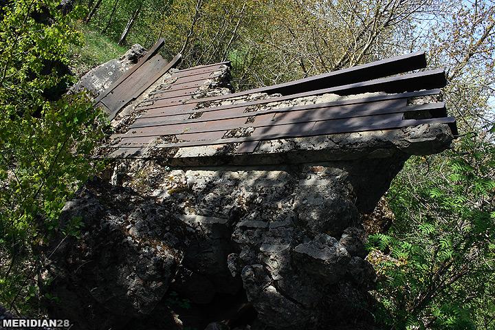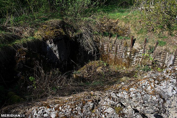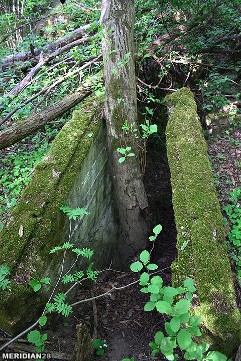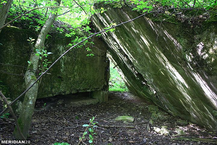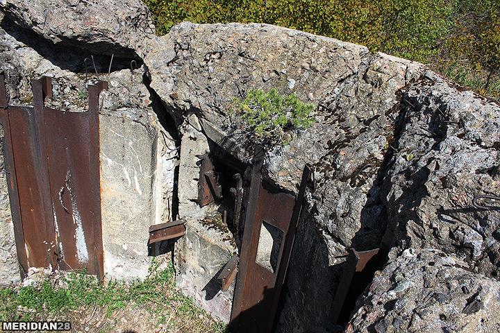 Логойщина известна тем, что там особенно лютовали карательные отряды СС. Довоенных сожженных деревень в округе, наверное, больше, чем современных отстроенных. Судя по всему, та же участь постигла и ДОТы — их взорвали немецкие саперы. Как я уже писал, в начале войны у немцев действовала программа по уничтожению вражеских огневых точек, но впоследствии она была свернута из-за большого перерасхода взрывчатки. Здесь фашисты не поскупились: каждая огневая точка просто вывернута наружу, метровые бетонные стены выдернуты из основания и раскинуты рядом с котлованом.