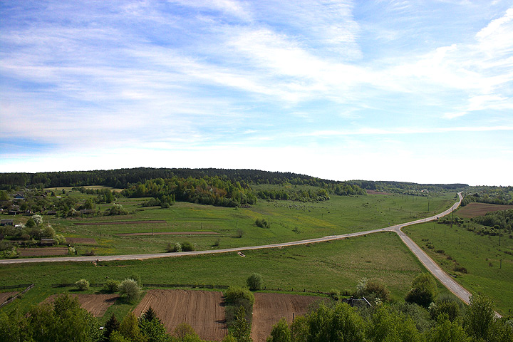 После осмотра памятника и мозгового штурма отправляемся к Малым Янушковичам. По дороге в деревню, на возвышенности замечаем сорокаметровую пожарную вышку — отличный шанс осмотреть местность с высоты птичьего полета. Место оказалось просто великолепным. Хоть вышку слегка и раскачивало при порывах ветра, красивейший вид был куда сильнее страха. Но ДОТов мы так и не увидели. Пришлось «брать языка» из числа сельских жителей. Из разговора с бабушкой мы выяснили, что ДОТов здесь «очень много» и что их во время войны взорвали немцы «вместе с оружием, продовольствием и одеждой». Комментировать эту информацию бесполезно. Осмотрев ДОТы рядом с Малыми Янушковичами, отправляемся дальше, к двум последним ДОТам возле деревень Стайки и Бухновичи.