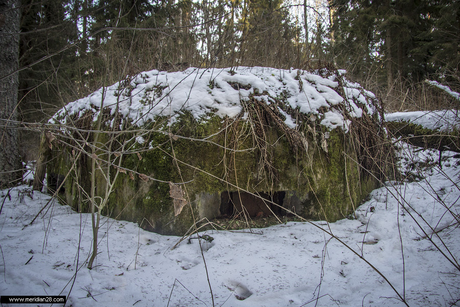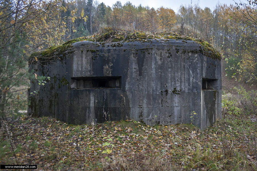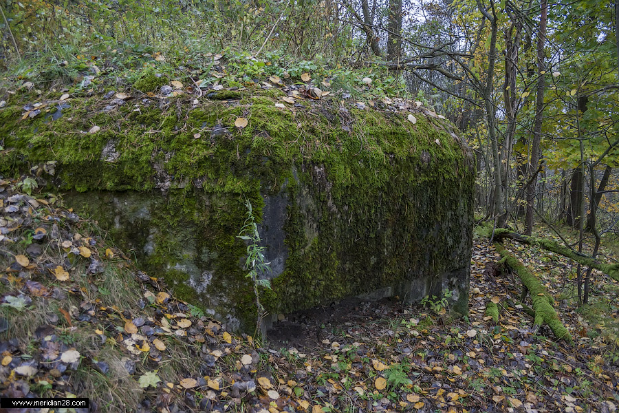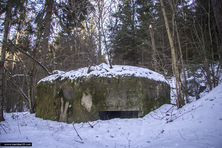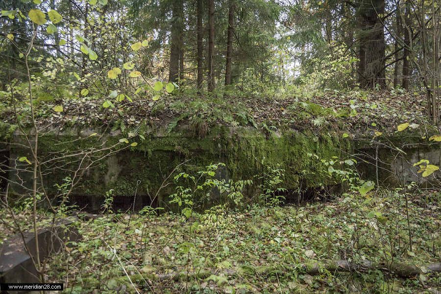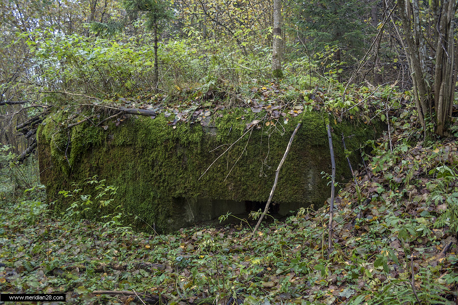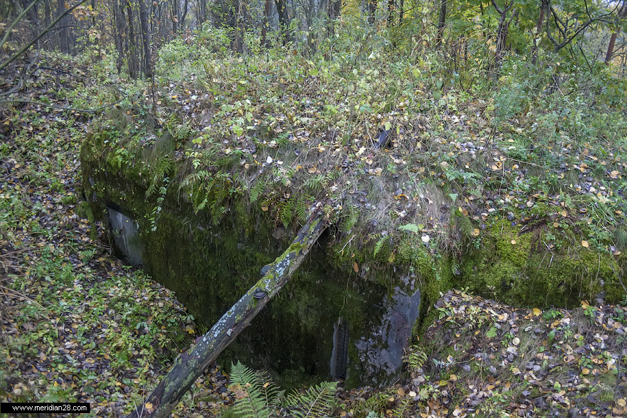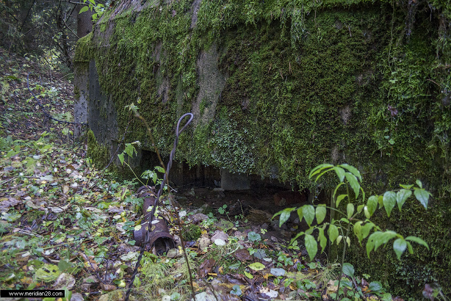 Сооружение класса защиты М-2 обнаружилось на склоне холма. Уцелели пулеметные столы и баки для воды. В каземате не было отдельной командирской выгородки, перископ находился прямо в боевом каземате, что является не очень удачным конструктивным решением. В целом, состояние сооружения очень хорошее.
