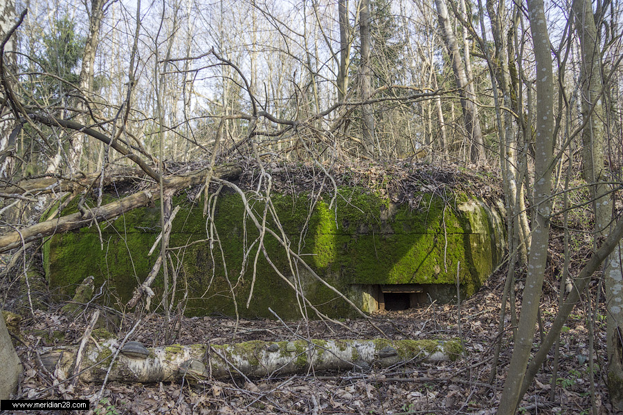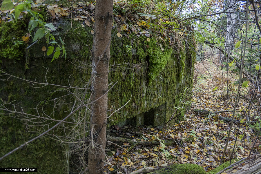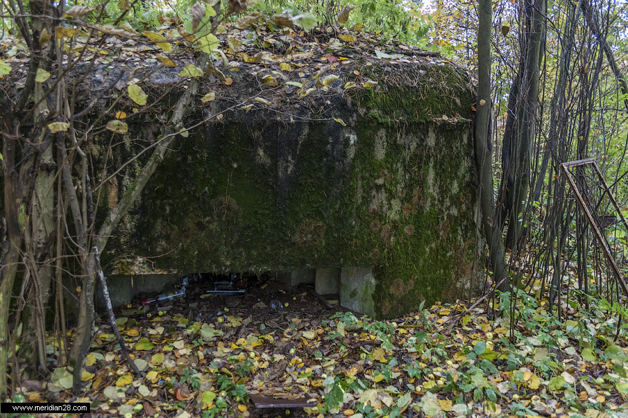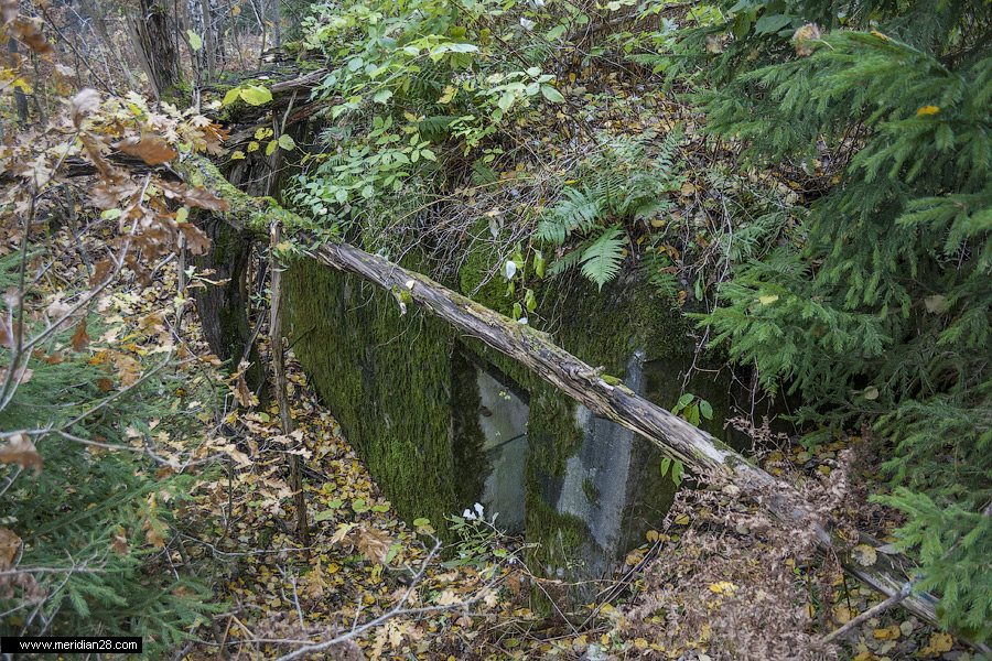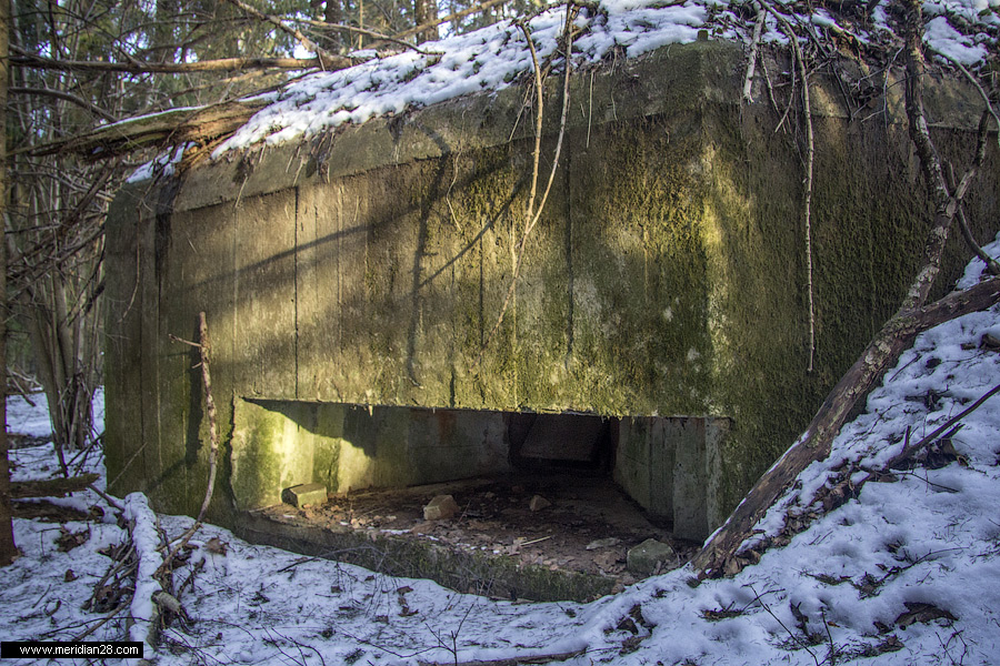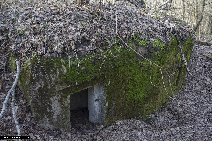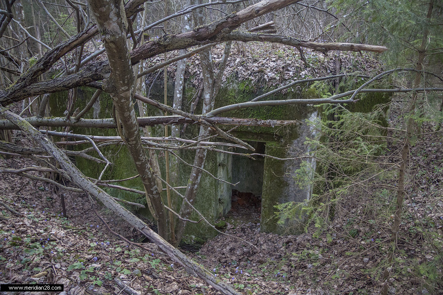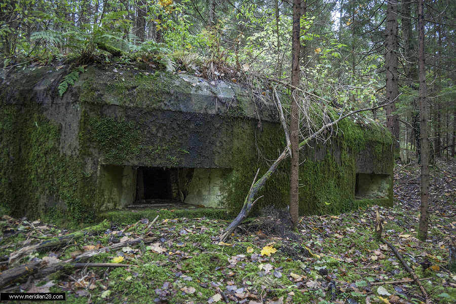 Сооружение класса защиты М-2 обнаружилось на склоне холма. Уцелели пулеметные столы и баки для воды. В каземате не было отдельной командирской выгородки, перископ находился прямо в боевом каземате, что является не очень удачным конструктивным решением. В целом, состояние сооружения очень хорошее.