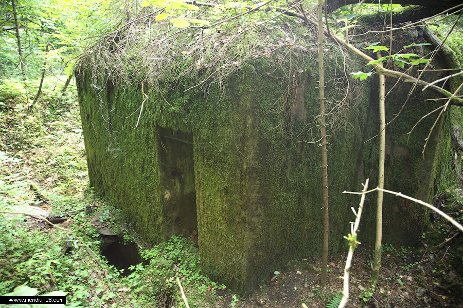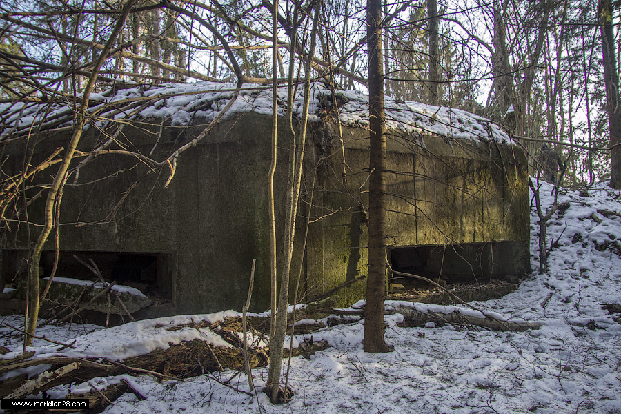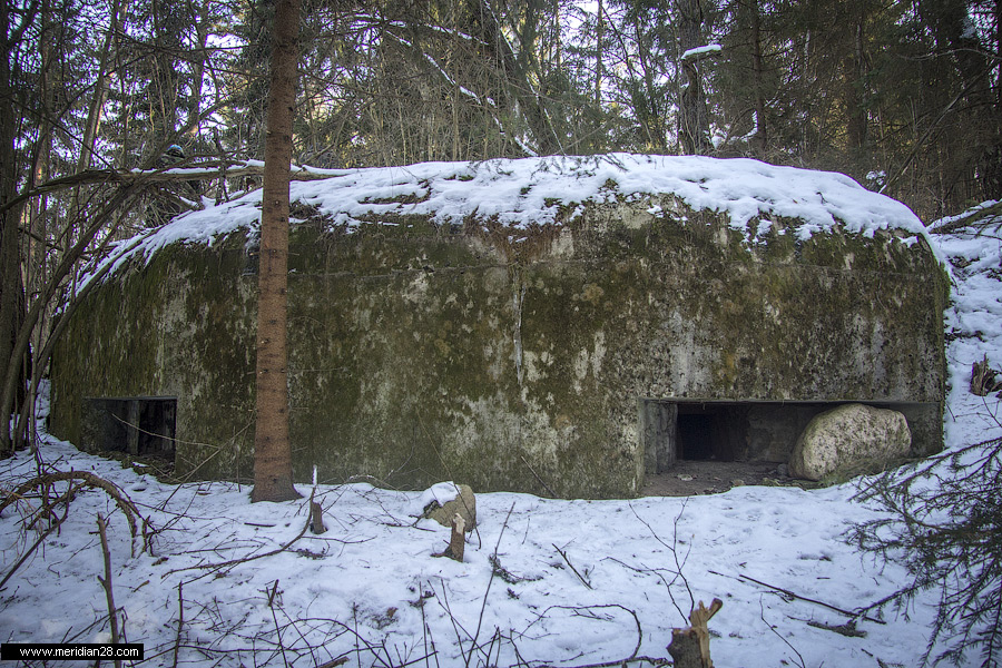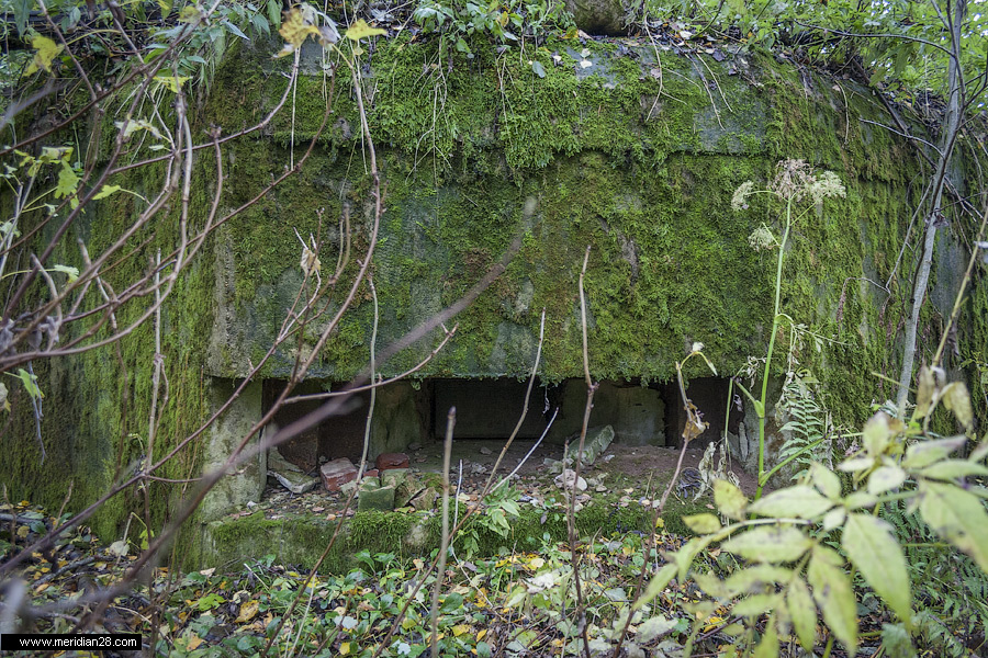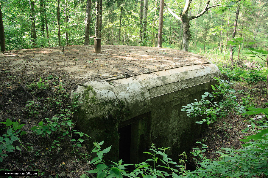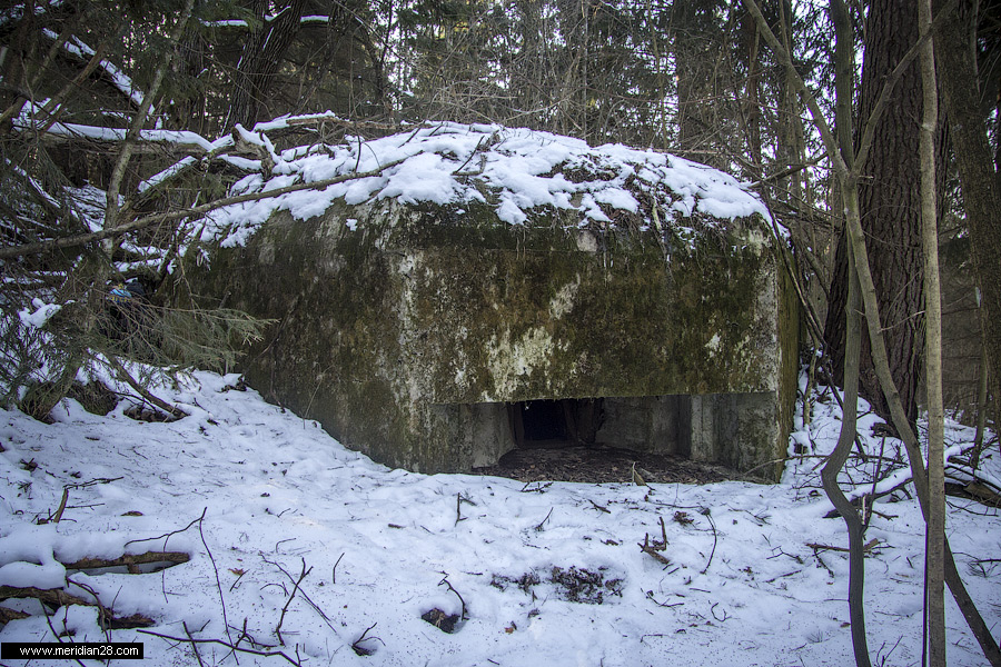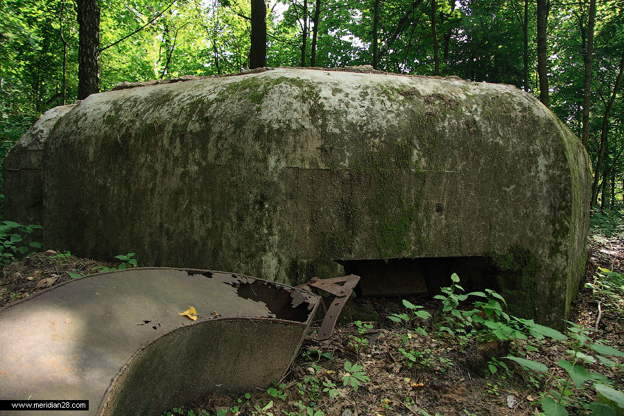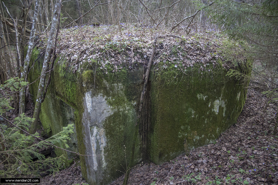 Сооружение класса защиты М-2 обнаружилось на склоне холма. Уцелели пулеметные столы и баки для воды. В каземате не было отдельной командирской выгородки, перископ находился прямо в боевом каземате, что является не очень удачным конструктивным решением. В целом, состояние сооружения очень хорошее.