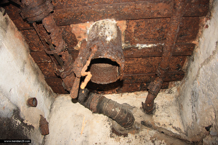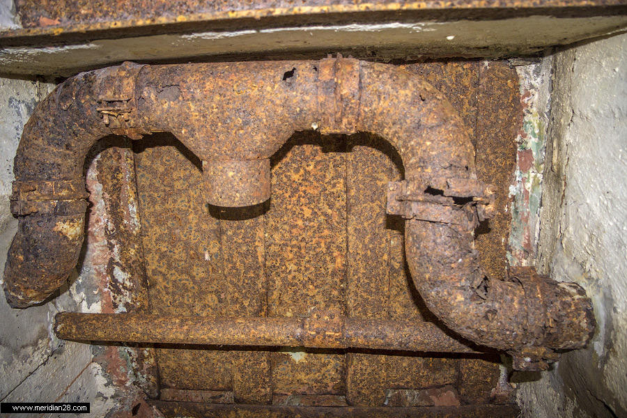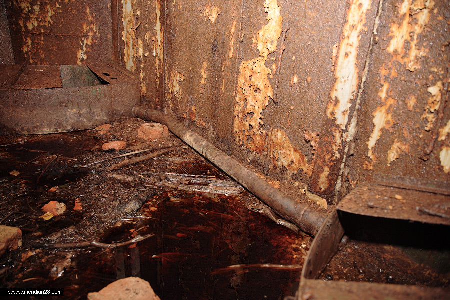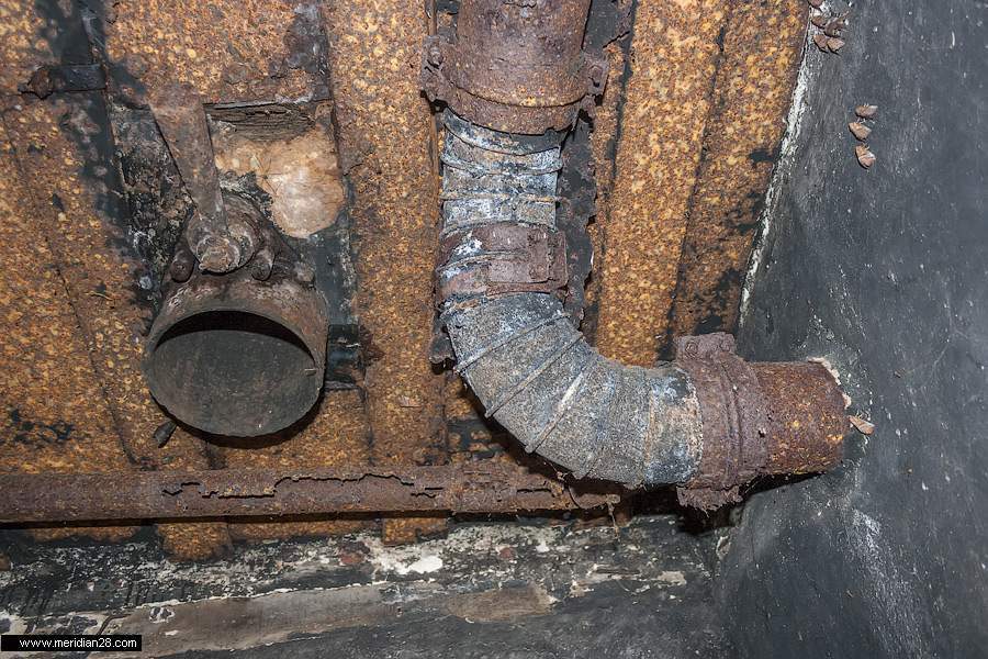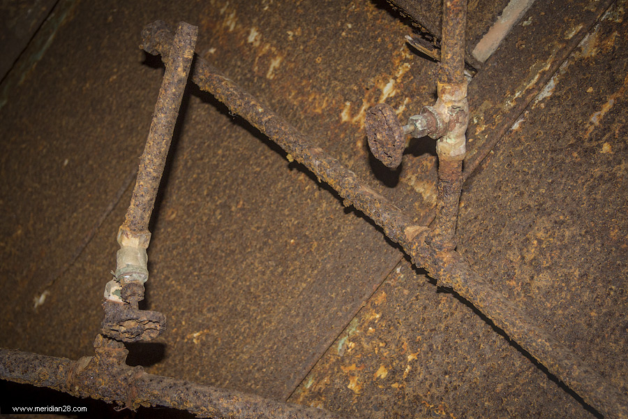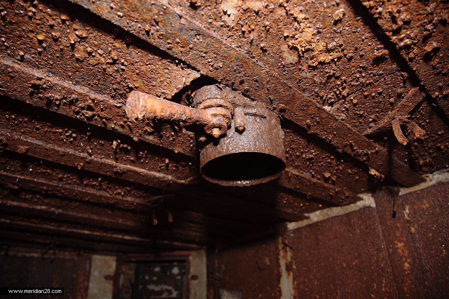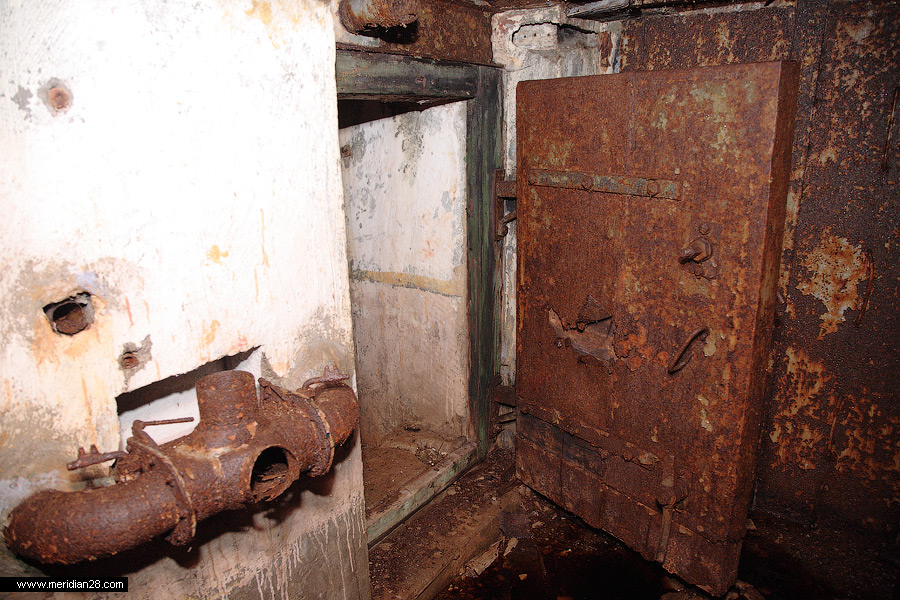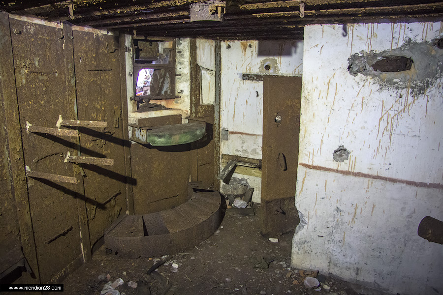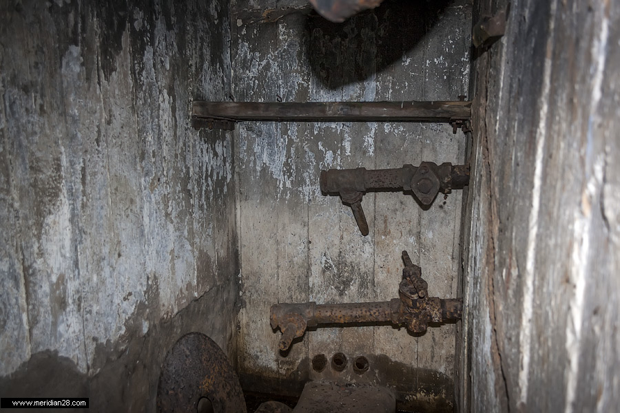 Осмотр начали с нижнего этажа, на который вел скоб-трап. Отлично сохранилось помещение с фильтрационной установкой: мы обнаружили там части агрегатов. Хорошо сохранились также все двери и трубы. Верхний этаж порадовал меньше: отсутствовали пулеметные станки.