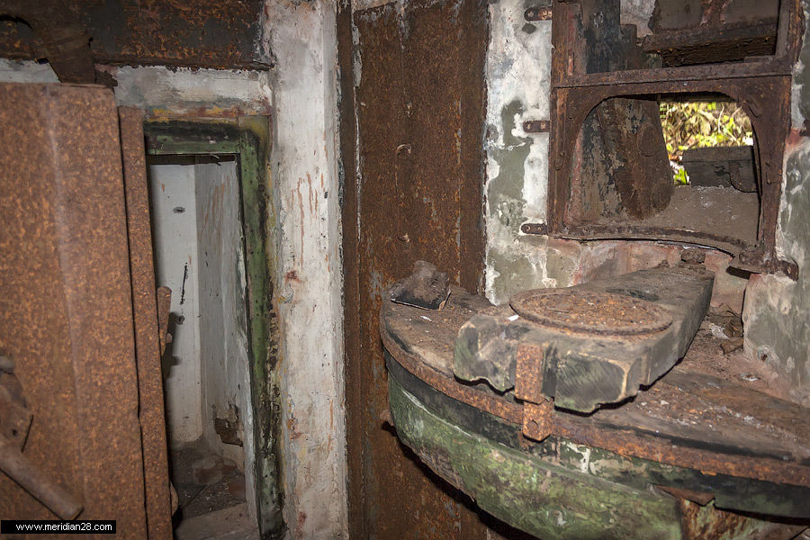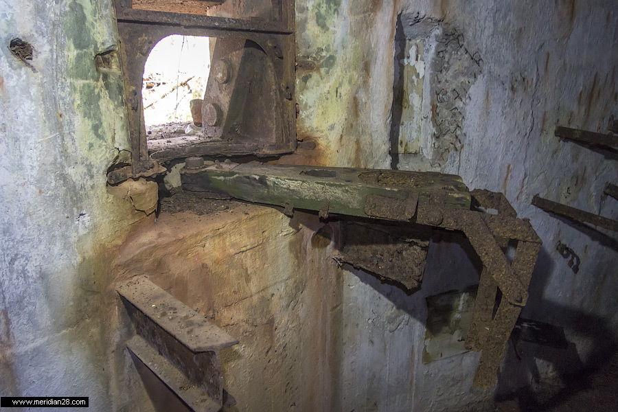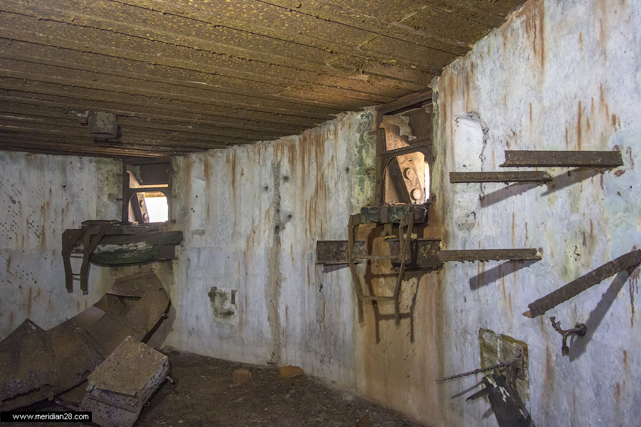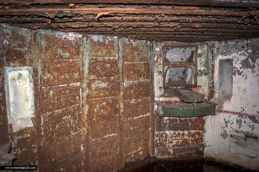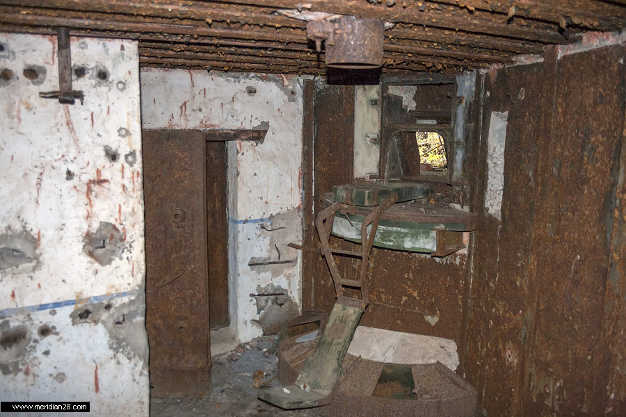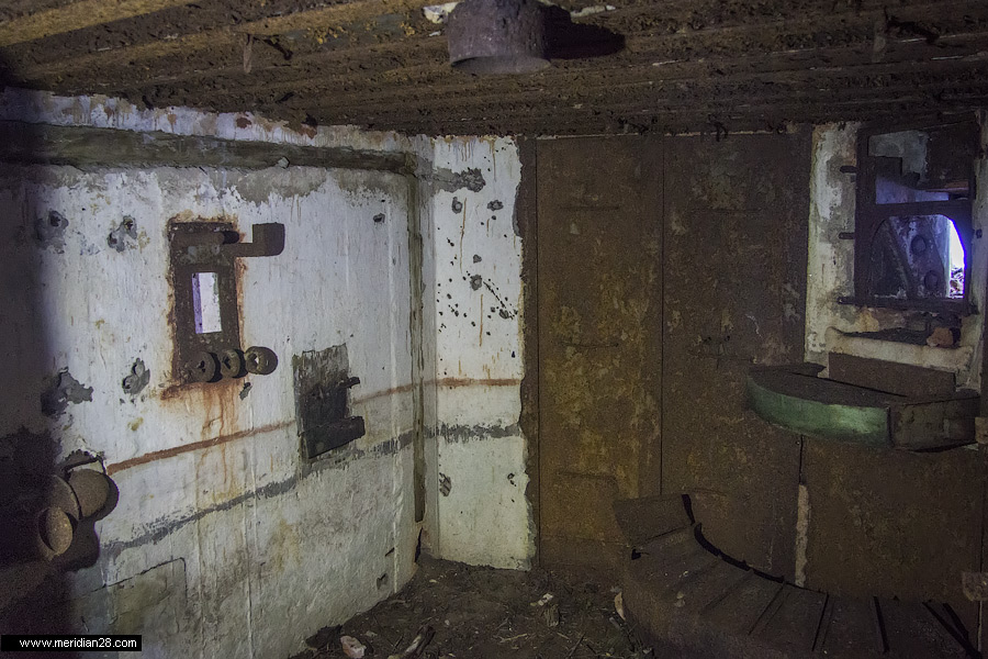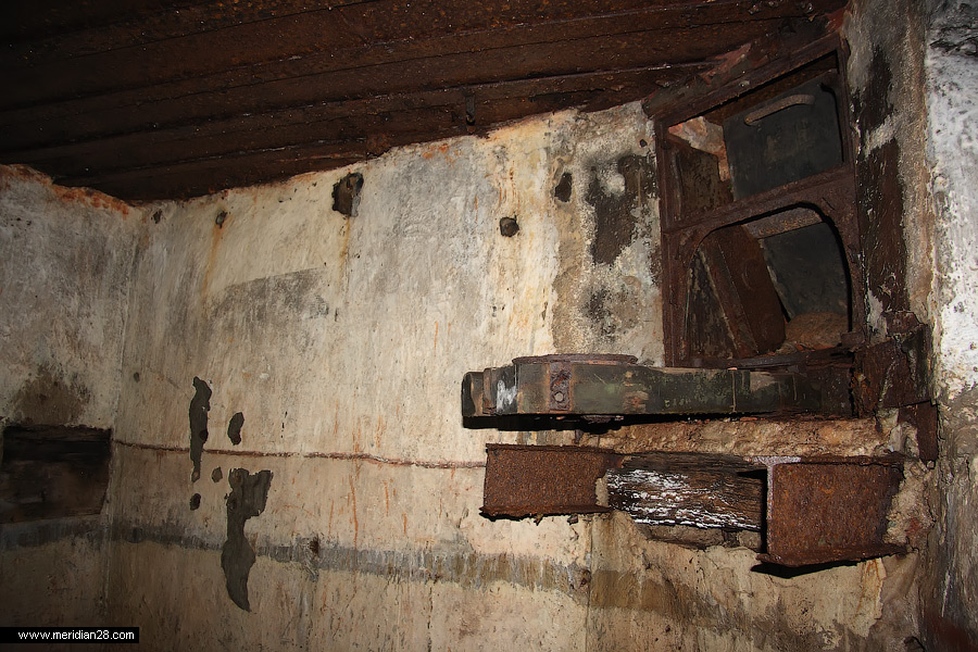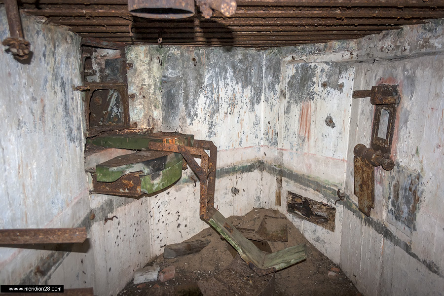 Внутри сооружения отлично сохранились пулеметные станки, переговорные устройства и прочее оборудование.