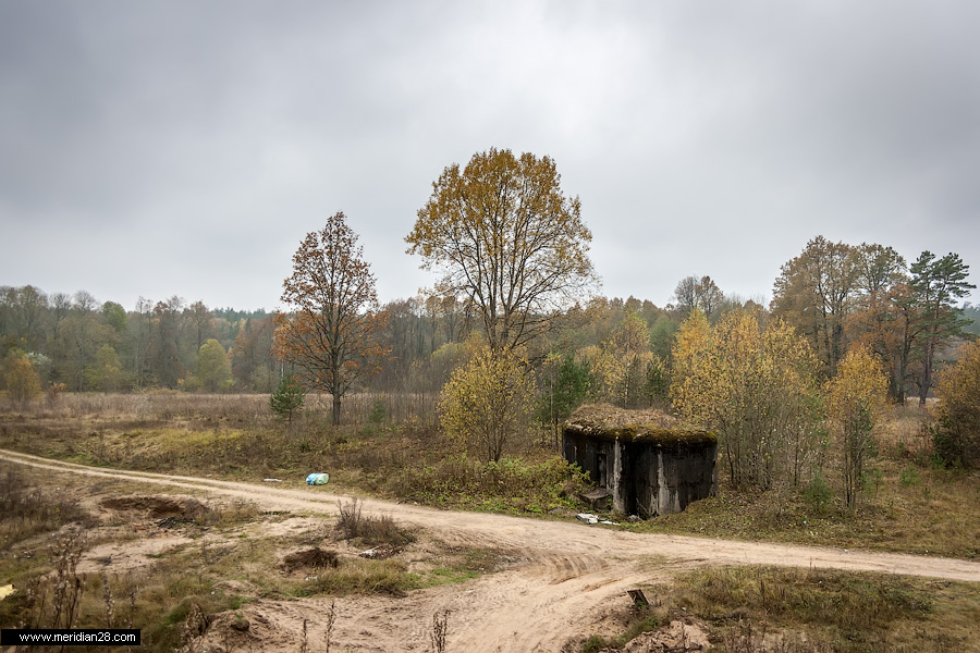 Начинаем поиски с самого удаленного от людей сооружения — ДОТ № 196 класс защиты М-3. Сооружение имеет самый низкий класс защиты и находится в глубине района на второстепенном направлении. Сооружение должно было прикрывать разрыв между командно-наблюдательным пунктом № 182 и пулеметным ДОТом № 197, которые находятся у деревни Хоруженцы.