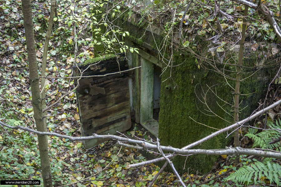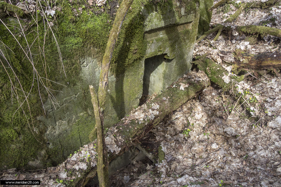 «Москиты» относились к классу М-4, имели более низкую сопротивляемость к попаданию снаряда, чем линейные огневые точки. Эти ДОТы не имели противохимического тамбура. Внутреннее оснащение точки было простейшим — пулемет на станке и кое-какое оборудование жизнеобеспечения. Ставились «москиты» на второстепенных направлениях: они прикрывали тыл основного линейного ДОТа или закрывали огнем легкопроходимые лощины. В нашем случае— первый вариант. В сооружении сохранилась дверь.