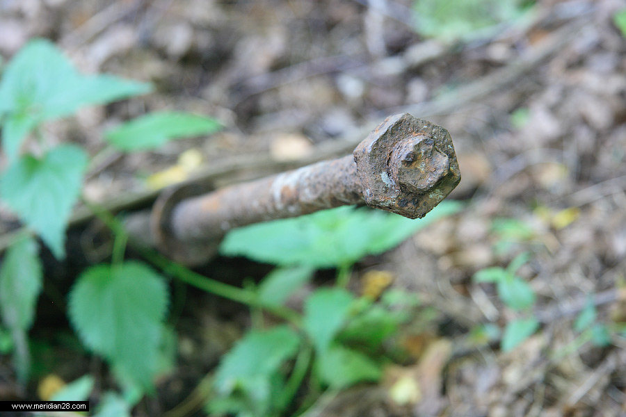 Далее поиски еще более осложнились. Согласно архивной карте, ДОТ № 185 должен был находиться на небольшом холме у реки. Перенеся координаты с архивной карты на современную, в нужном квадрате никаких следов сооружения мы не нашли. Прочесывание соседних холмов и лощин также не принесло абсолютно никаких результатов. Объяснение могло быть только одним — ДОТ нанесен на архивную карту с ошибкой. С ситуацией помог разобраться дачник из садового товарищества «Камвольщик», который уже встречался с ДОТом во время сбора грибов. К нашему глубокому удивлению, ДОТ обнаружился в 600 метрах от точки, обозначенной на архивной карте.