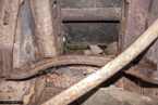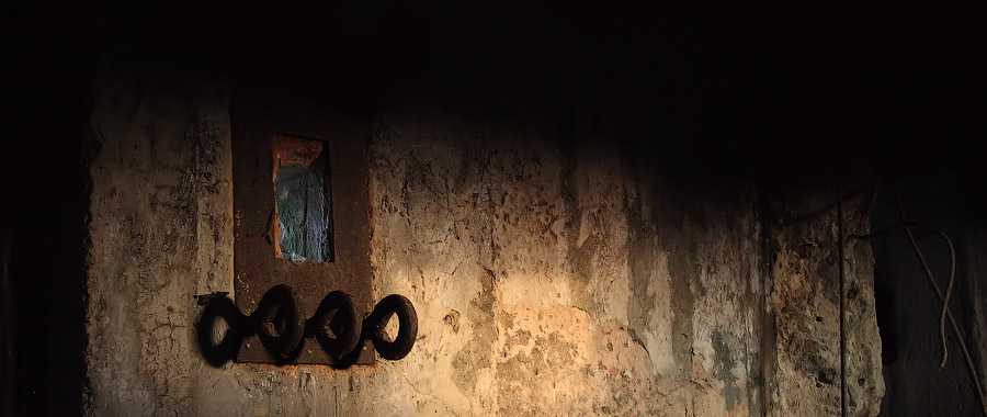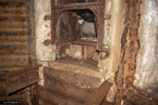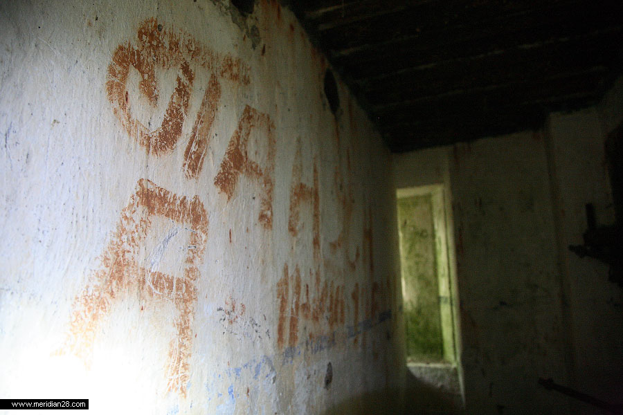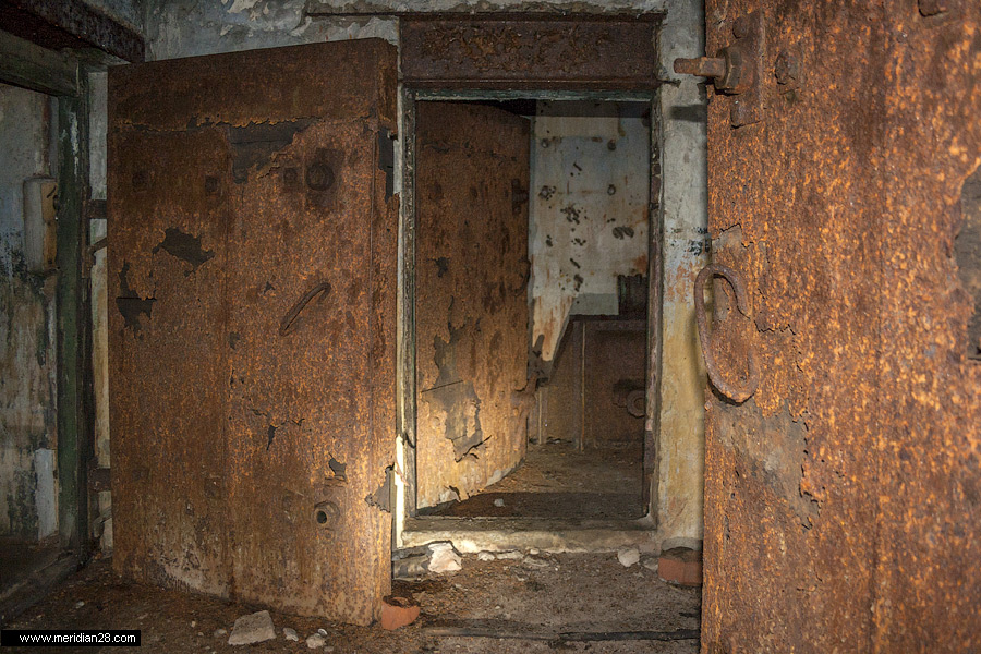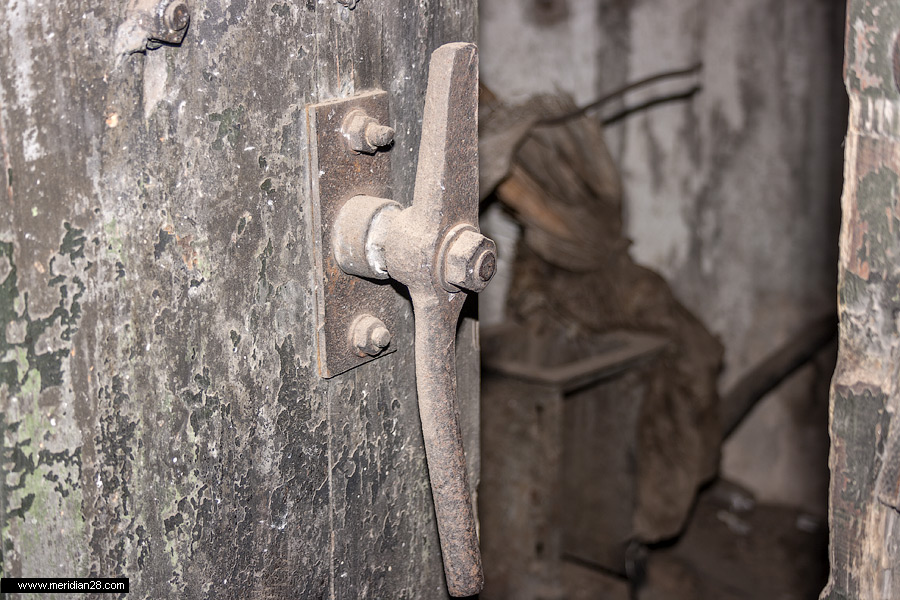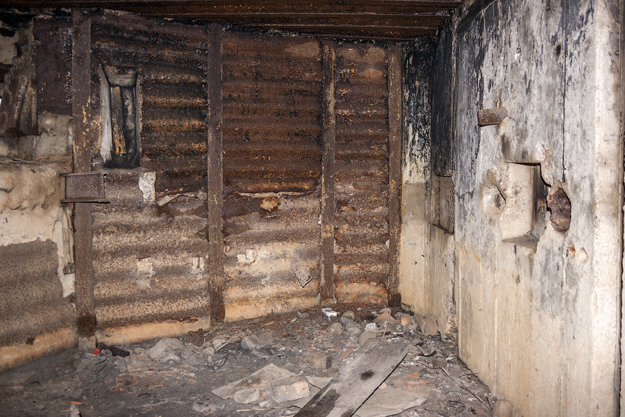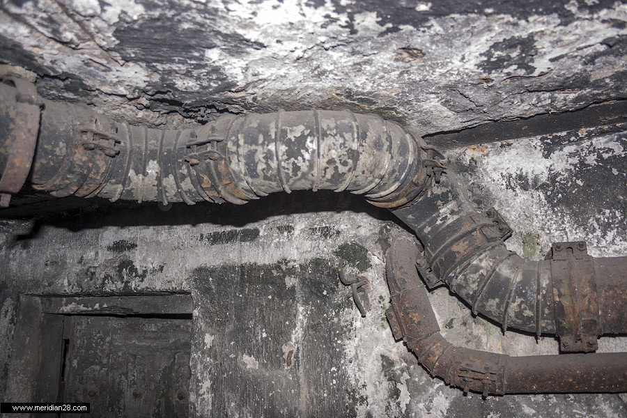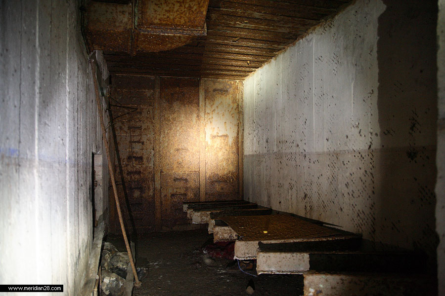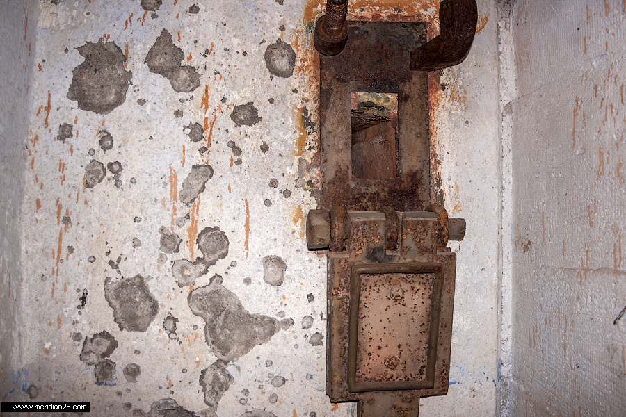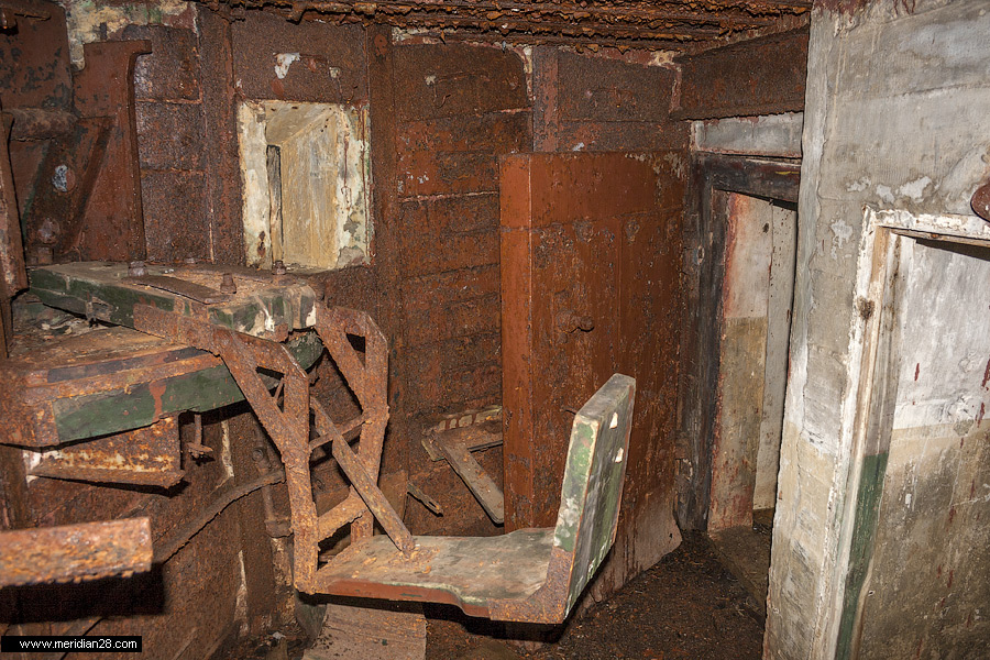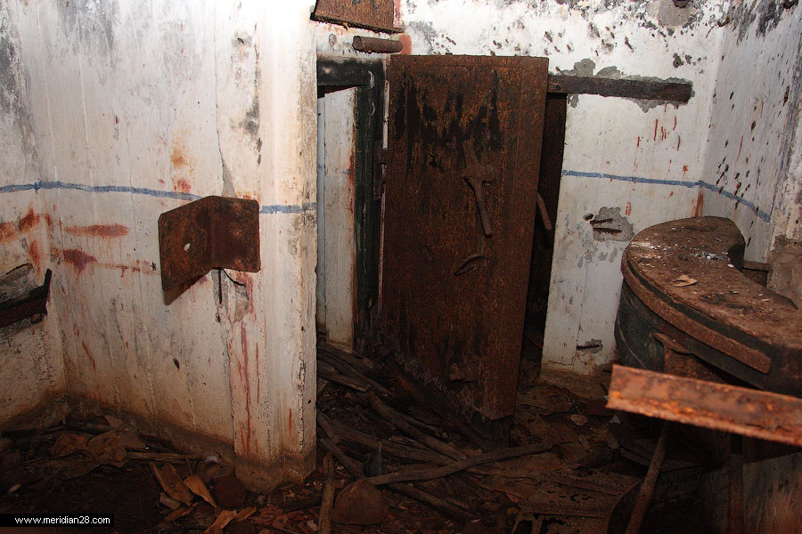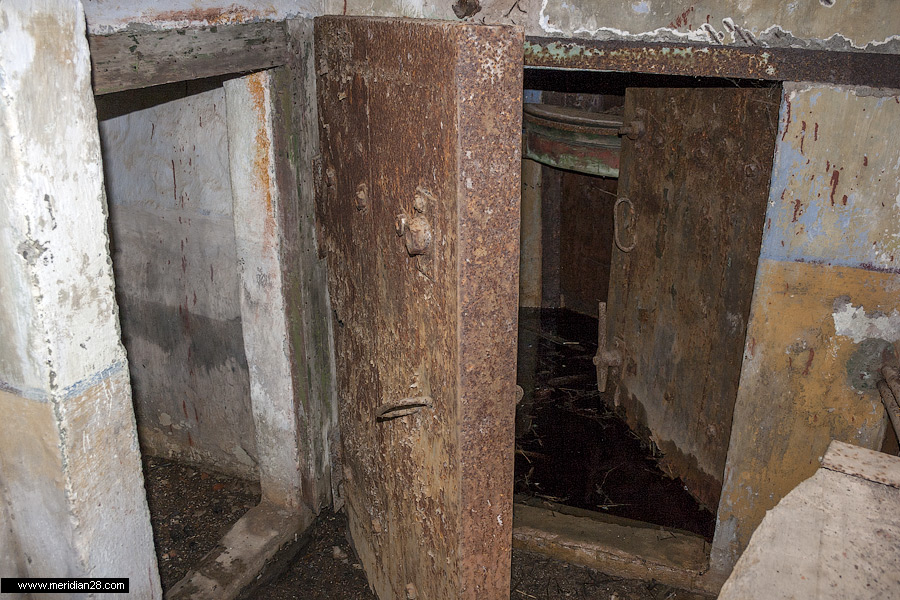Сооружение не пытались превратить в погреб или сарай, но хотели предотвратить его посещение нерасторопными гражданами. На амбразурах и сквозниках теперь стоят решетки. Но попасть внутрь все же не составляет большого труда. Благодаря именно этим мерам по «самостоятельной консервации» сооружения внутри сохранились части силового агрегата, капонирные лафеты и бронированные двери. За исключением груды шифера в правом каземате, внутри ОПК чисто. Это хорошо.