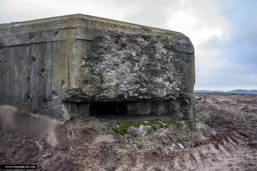 Следующий ДОТ № 169, который располагался на краю поля, недалеко от лесной дорожки, мы нашли совершенно случайно, во время поисков орудийного капонира № 09. Помимо того, что это был АНП (артиллерийский наблюдательный пункт), он ничем не отличался от остальных посещенных точек. Боевых повреждений на нем нет. Бетонированный дворик уцелел.