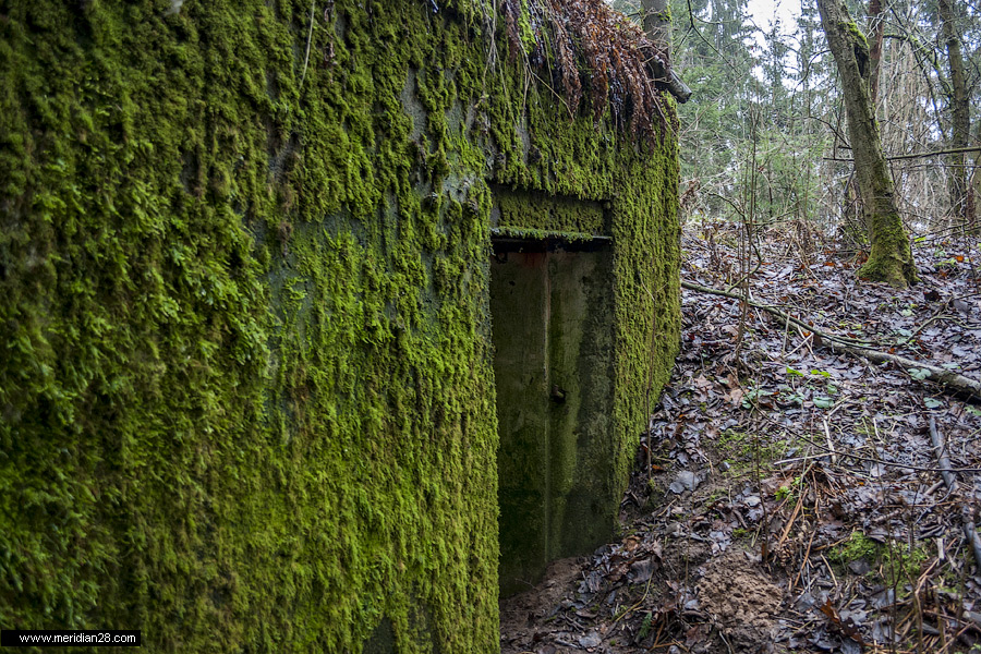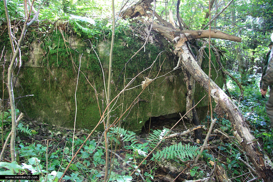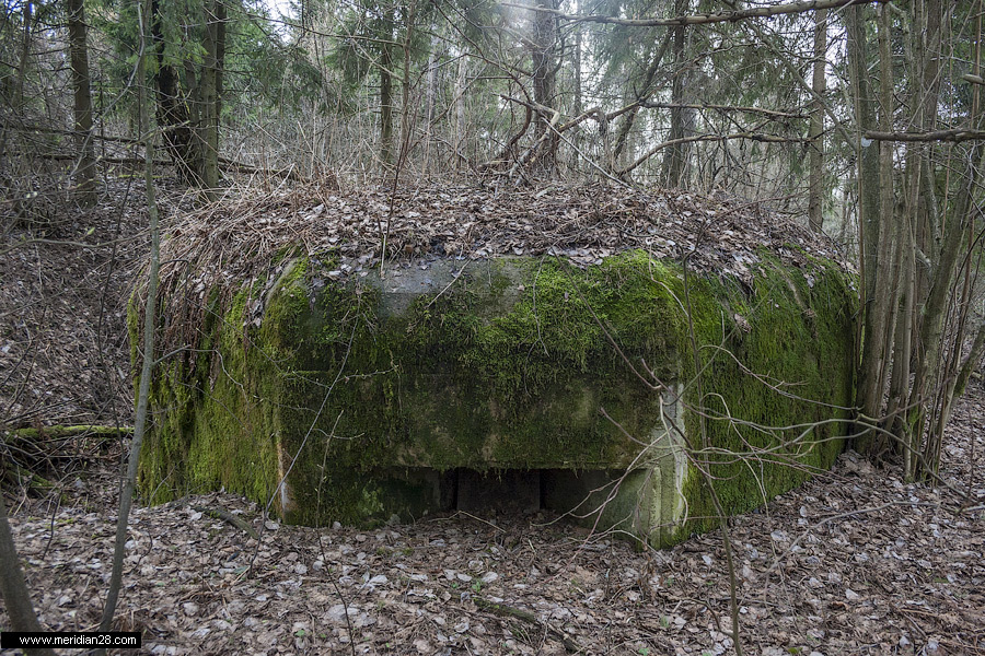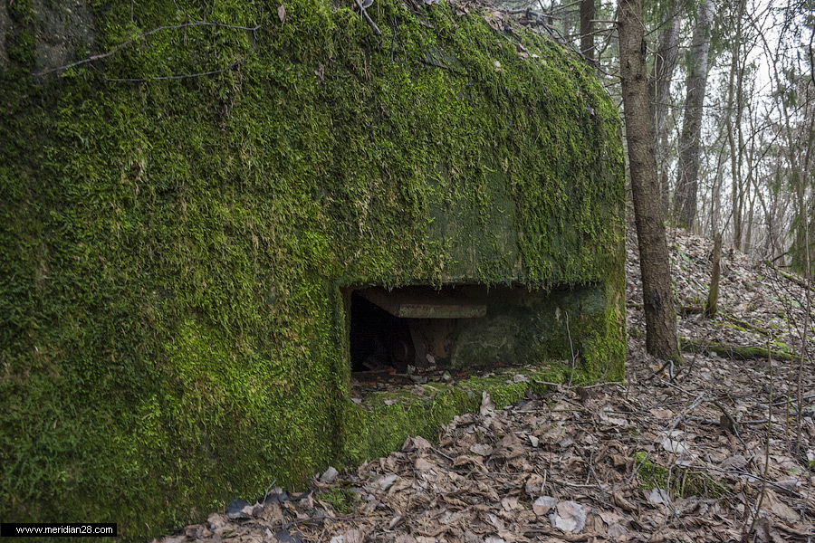 Начать поиски мы решили с деревни Готовино, где нас ждал первый ДОТ № 179. Свернув с дороги и проехав до кромки леса 300 метров, выходим из машины и углубляемся в лес. Точка решила от нас не прятаться, и её покрытые мхом стены были заметны с дальнего расстояния. Это был трехамбразурный пулеметный дот (тип М-2). Внутри очень хорошо сохранился станок ПС-31 системы Горносталева под пулемет «Максим», бронедвери и части бытового оборудования. Решетка сквозника возле входа для гашения ударной волны, на удивление, была не тронута. На амбразурах была замечена бронезаслонка, а на крыше — обсадная труба перископа, также имеющая защиту в качестве бронезаслонки. Мы остались очень довольны состоянием этой точки, видимо, определенное удаление от людей сыграло положительную роль для консервации объекта.