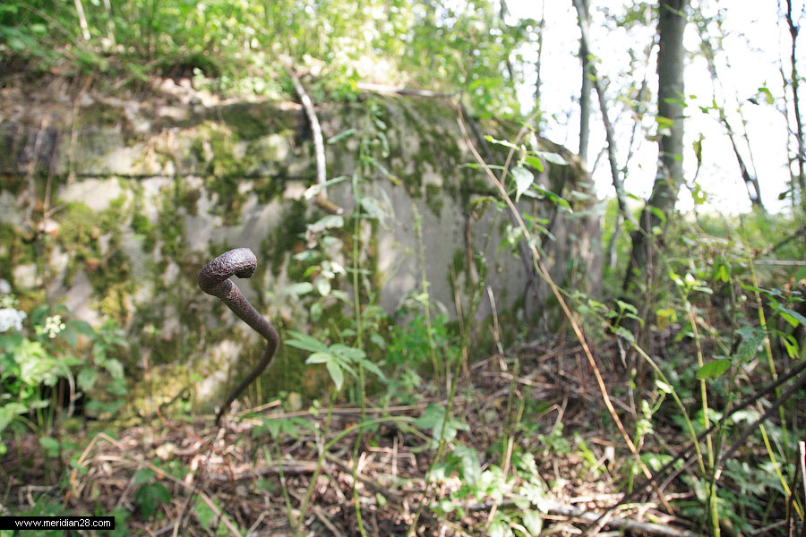 Также наш интерес вызвали аутентичные опоры для крепежа маскировочной сетки, которые сохранились возле амбразур ДОТа, — таких мы нигде не встречали.