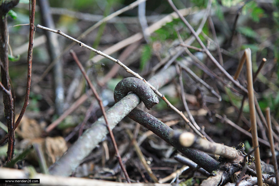 Следующей в нашем рейде должна была стать противотанковая точка № 163 — гибрид ДОТа с башней танка Т-26. К сожалению, башню сняли в 2006 году неизвестные любители военной истории и, как нам кажется, сдали в металлолом, из-за нехватки денег на научные открытия. Пришлось довольствоваться поисками самого каземата. Но поиски в лесу отверстия в земле диаметром около полутора метров — занятие очень увлекательное. На них пришлось потратить около 20 минут (это-то с точной крупномасштабной картой) и нашлась точка только после того, как ваш покорный слуга чуть в неё не провалился по природной нерасторопности и неудержимой тяге к приключениям на свою пятую точку. Сооружение представляло собой один каземат и вход, который был завален землей и врос в землю, — больше ничего.
