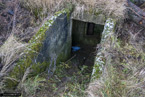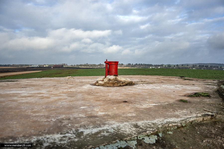 Следующее сооружение показалось сразу же, как мы вышли из лесной чащи, — командно-наблюдательный пункт (КНП) № 174 (тип М-1) в поле на холме у деревни Сады. Подходя к нему, мы опасались, что близость с деревней могла стать для него роковой, однако наши худшие предположения не подтвердились. Сооружение находилось в хорошем состоянии, в сквознике мы обнаружили надпись, которую нанесли солдаты гарнизона в