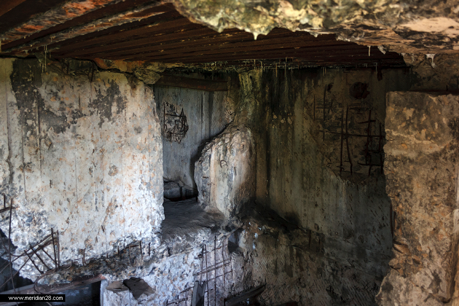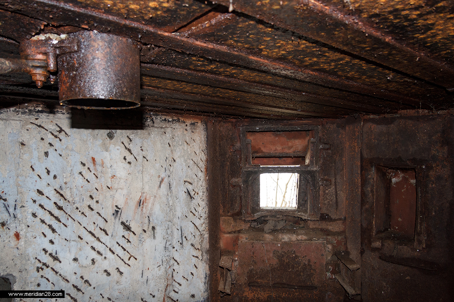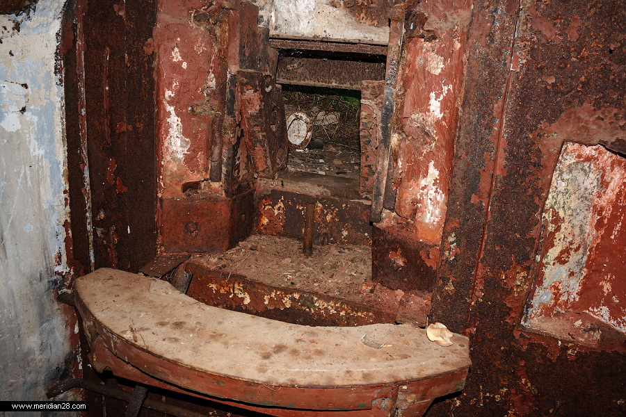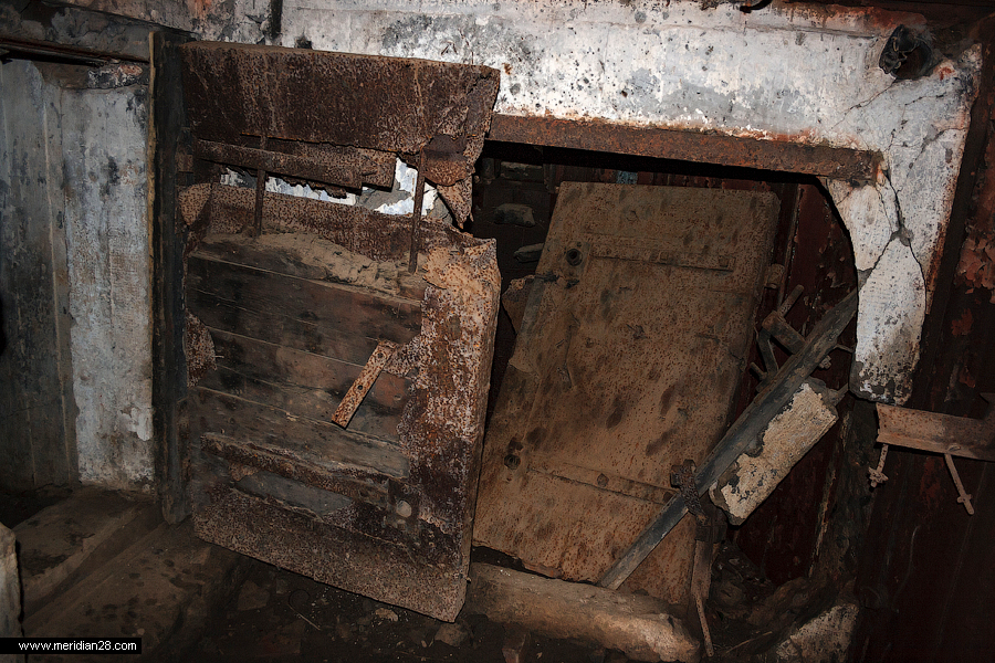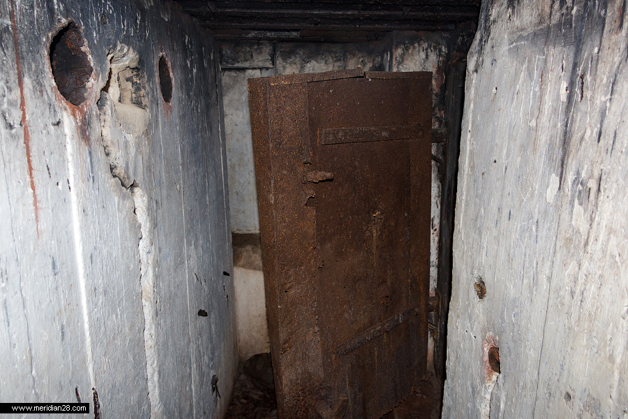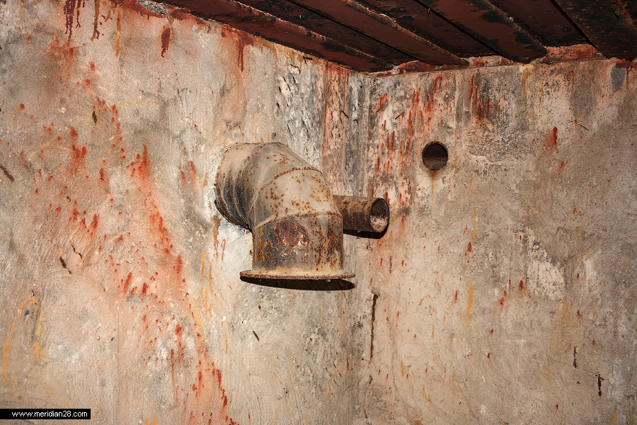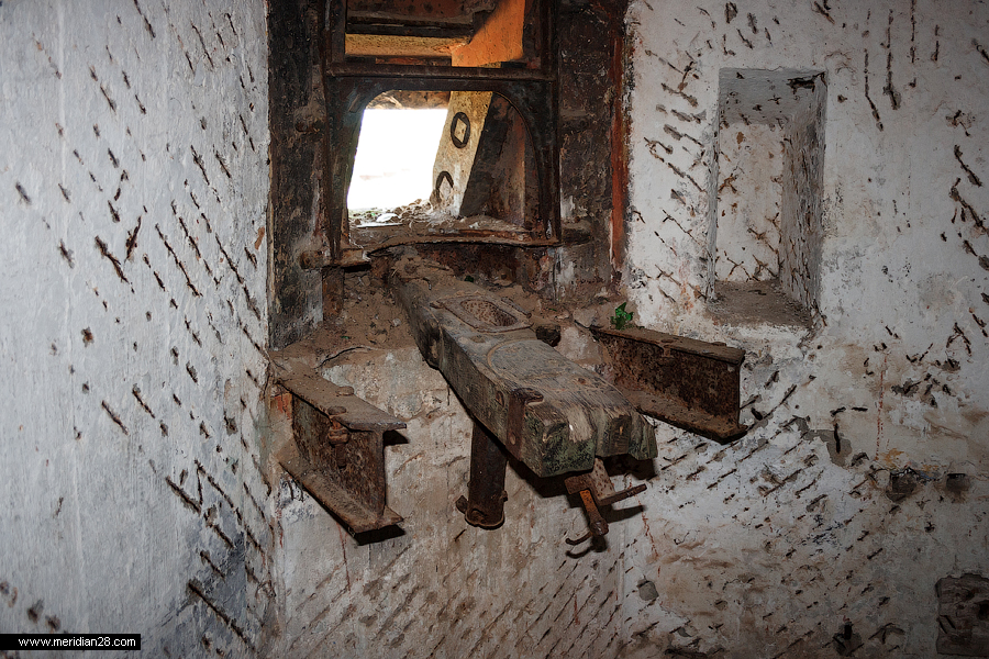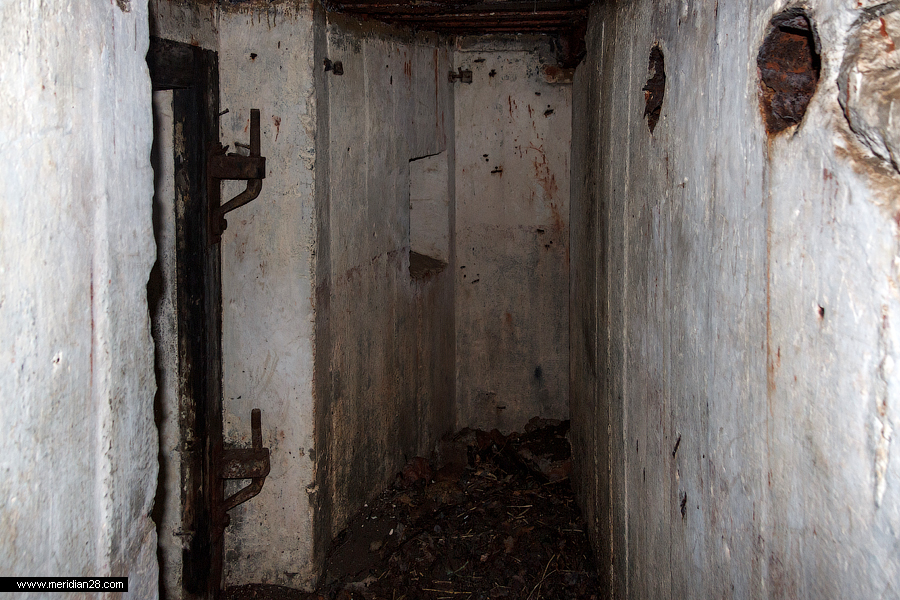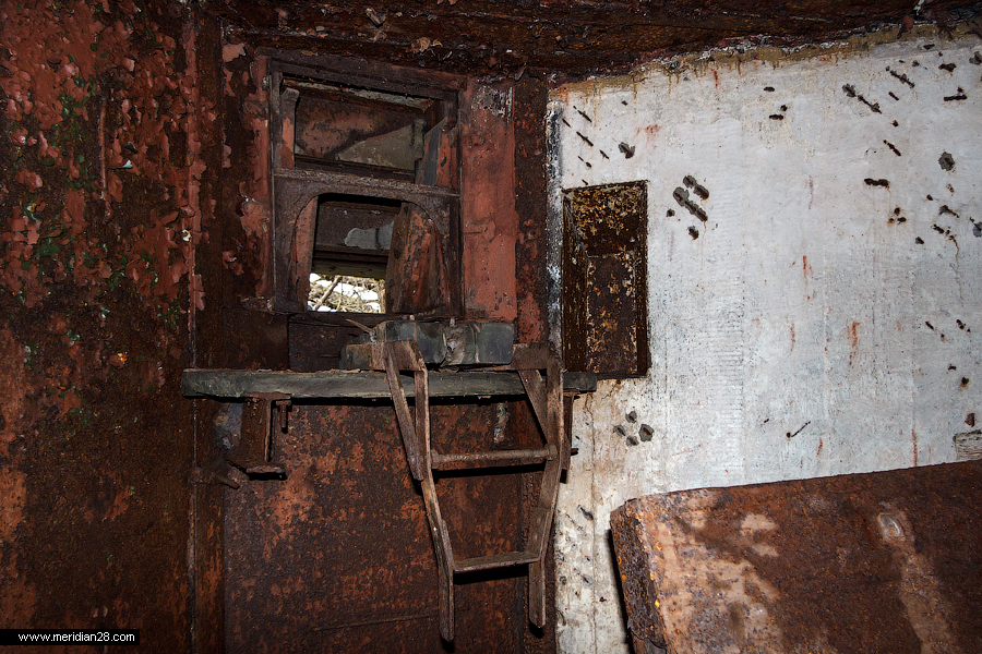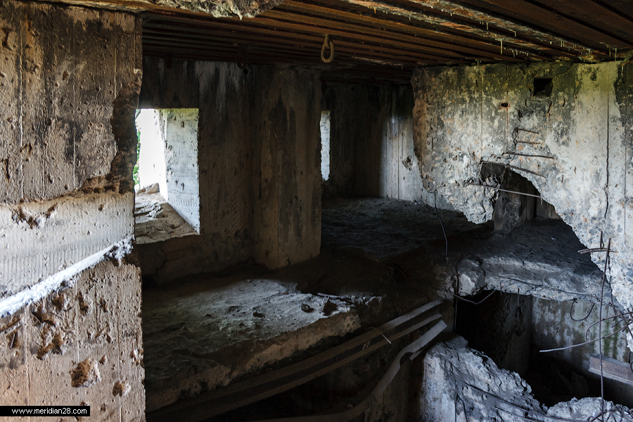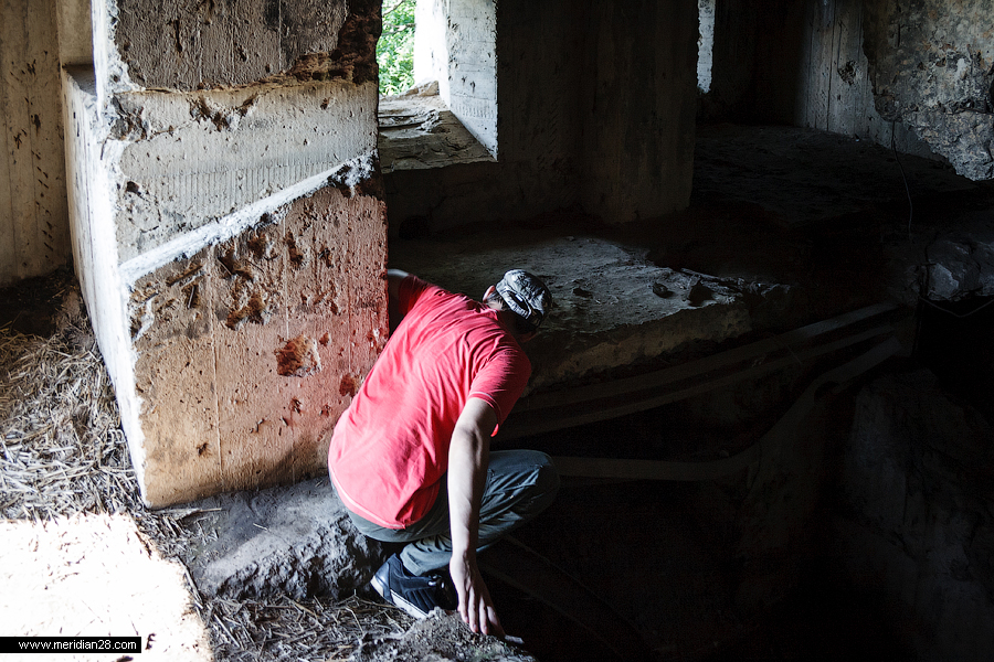 АПК № 046 «новой» постройки 1938-1939 гг. удивил нас последствиями взрыва межэтажного перекрытия. На стенах огневой точки имеются боевые повреждения. ДОТ был «переходного типа»: в нем еще предполагалось использовать «старую» артиллерийскую установку обр. 1932 г.