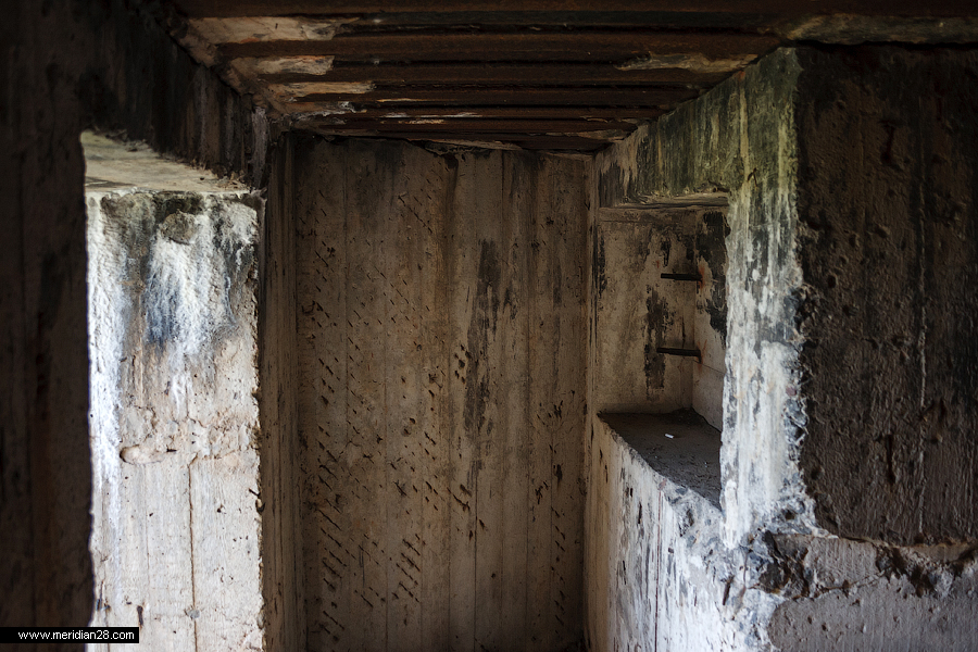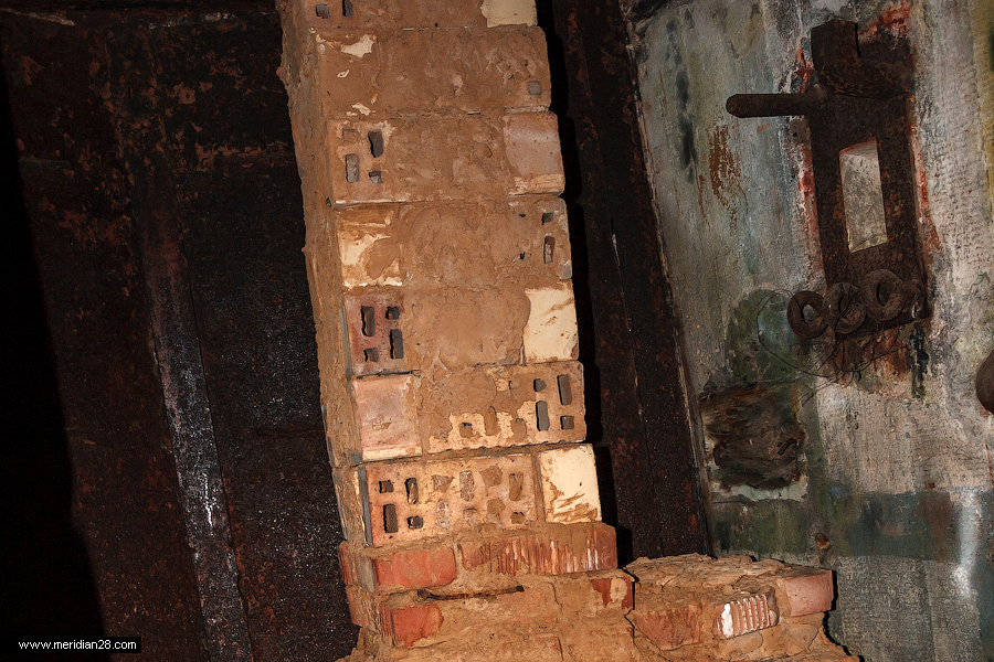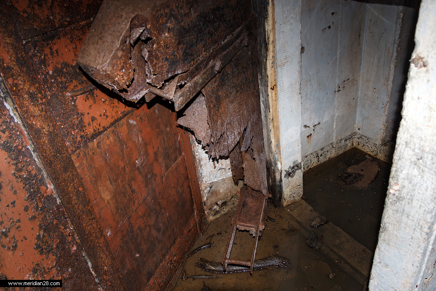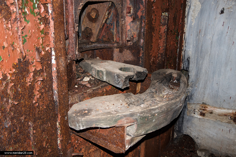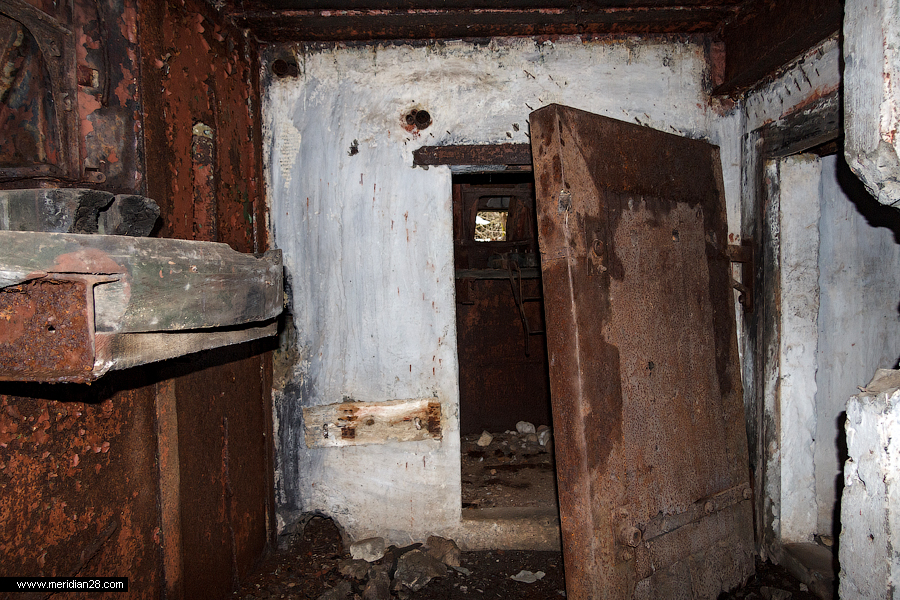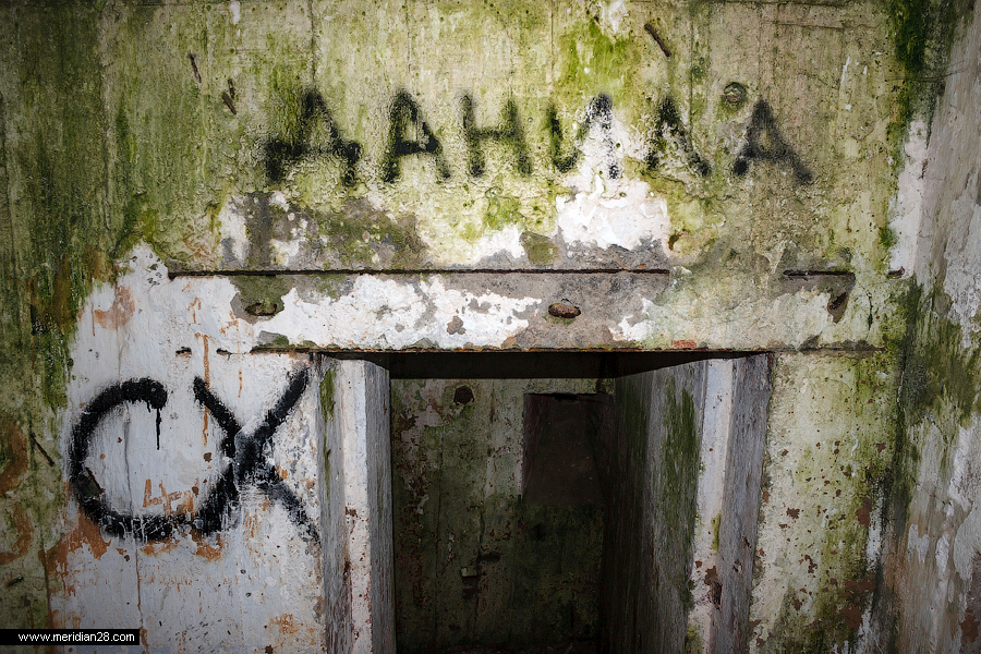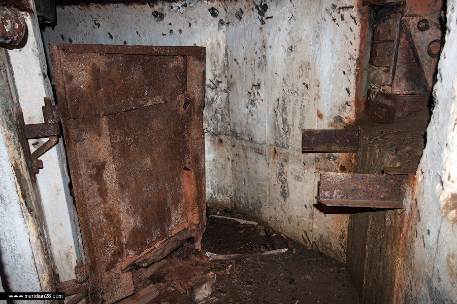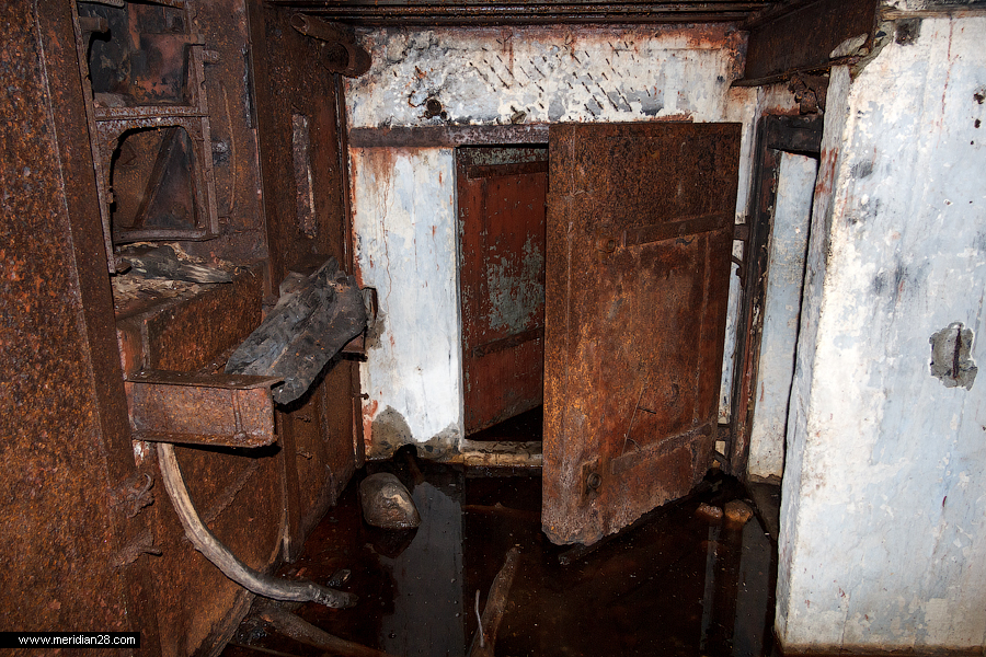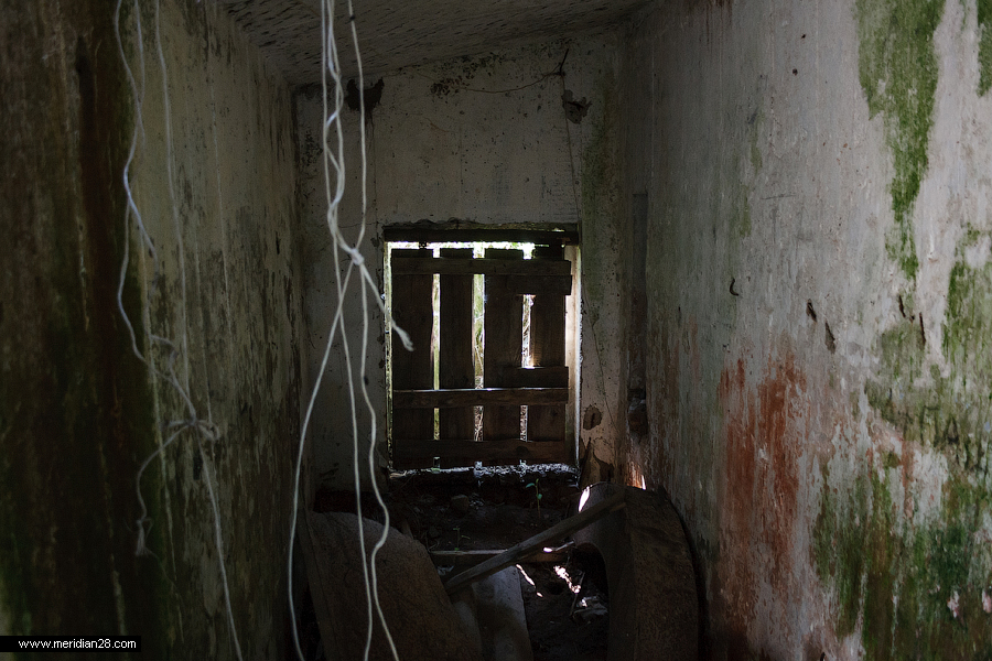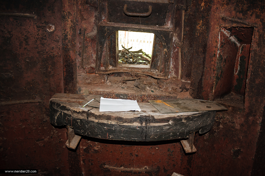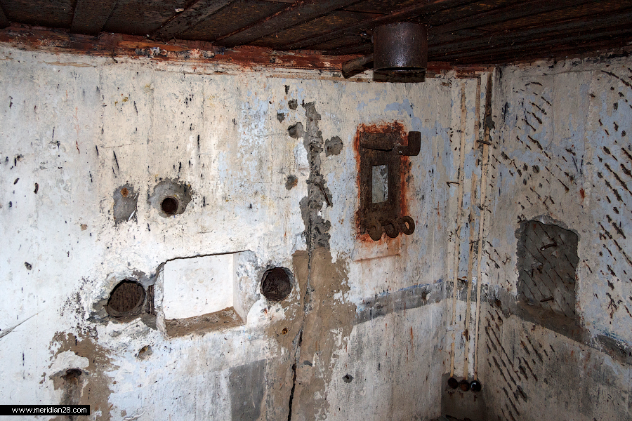 АПК № 046 «новой» постройки 1938-1939 гг. удивил нас последствиями взрыва межэтажного перекрытия. На стенах огневой точки имеются боевые повреждения. ДОТ был «переходного типа»: в нем еще предполагалось использовать «старую» артиллерийскую установку обр. 1932 г.