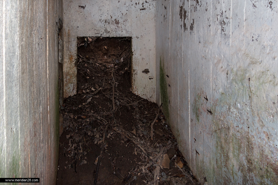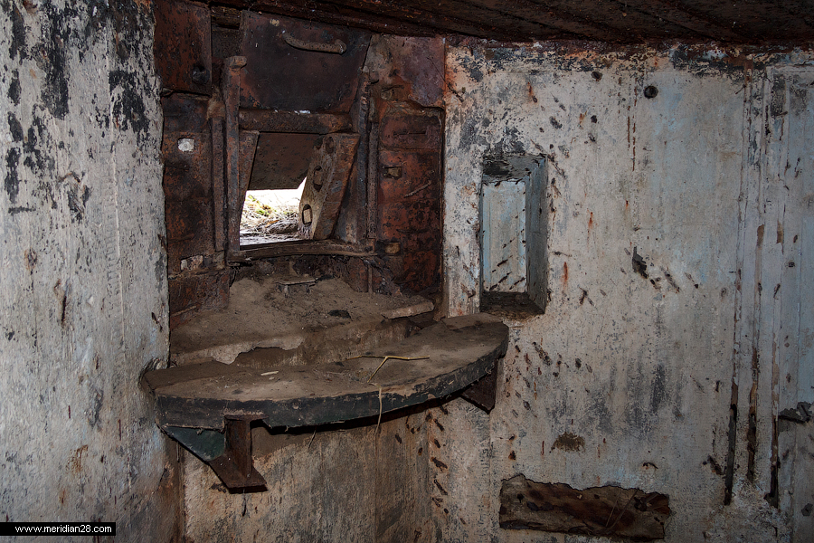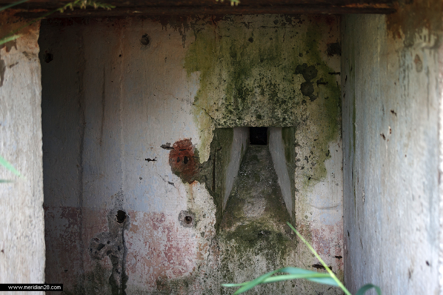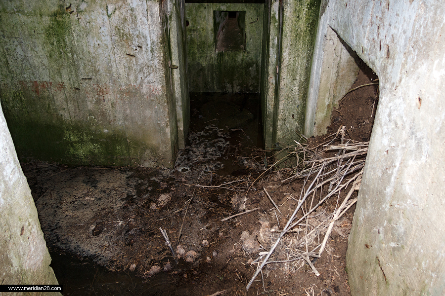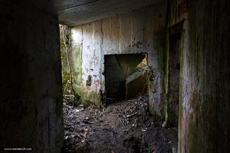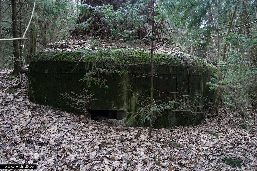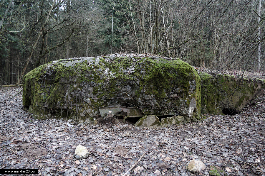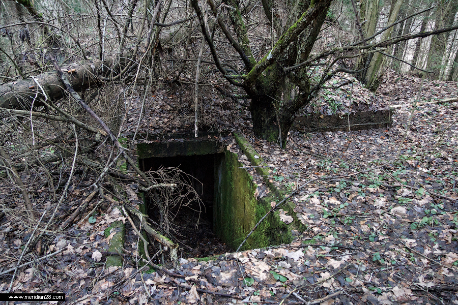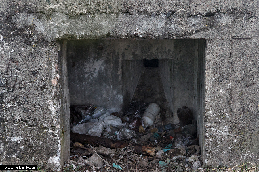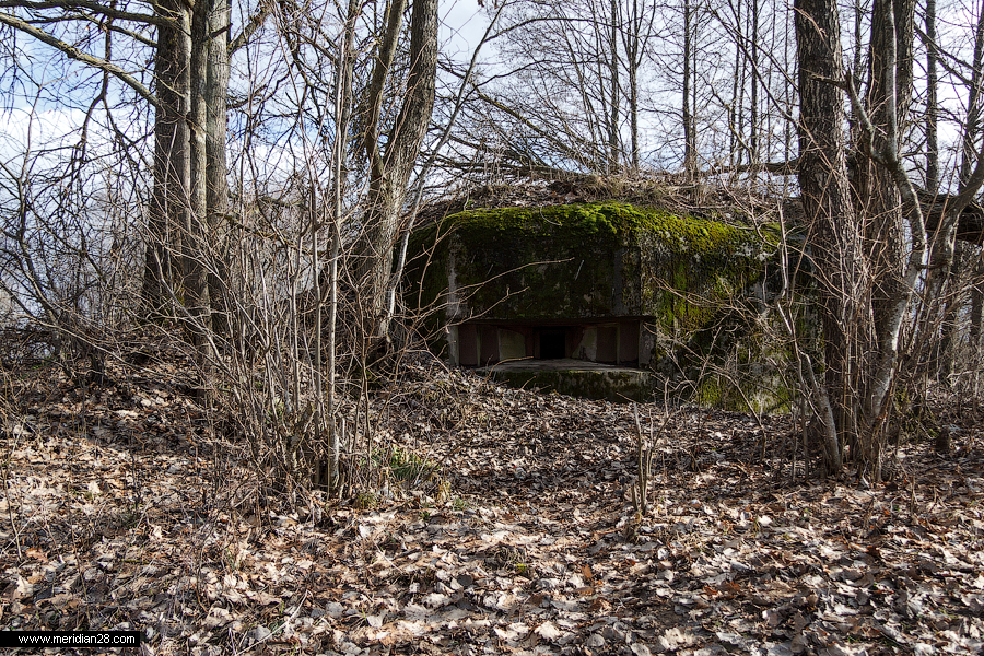 Поиск следующей огневой точки был долгий. Путь пролегал по лесу, часть вдоль берега реки. Отметим, что на протяжении нескольких километров в лесу сохранились полевые позиции, включая блиндажи достаточно крупных размеров. ДОТ № 24 имел класс защиты М-2. Внутренняя планировка огневой точки имеет интересную особенность: у ДОТа целых две амбразуры прикрытия. Одна из них расположена в малом каземате, из нее можно вести обстрел через противоштурмовую решетку сквозника.