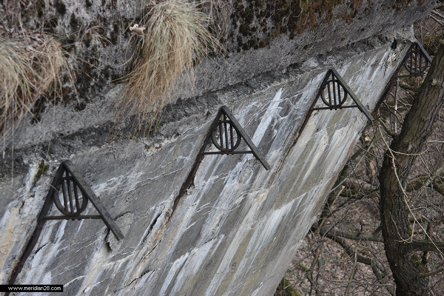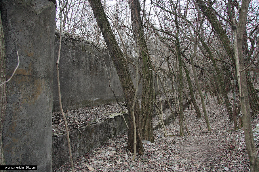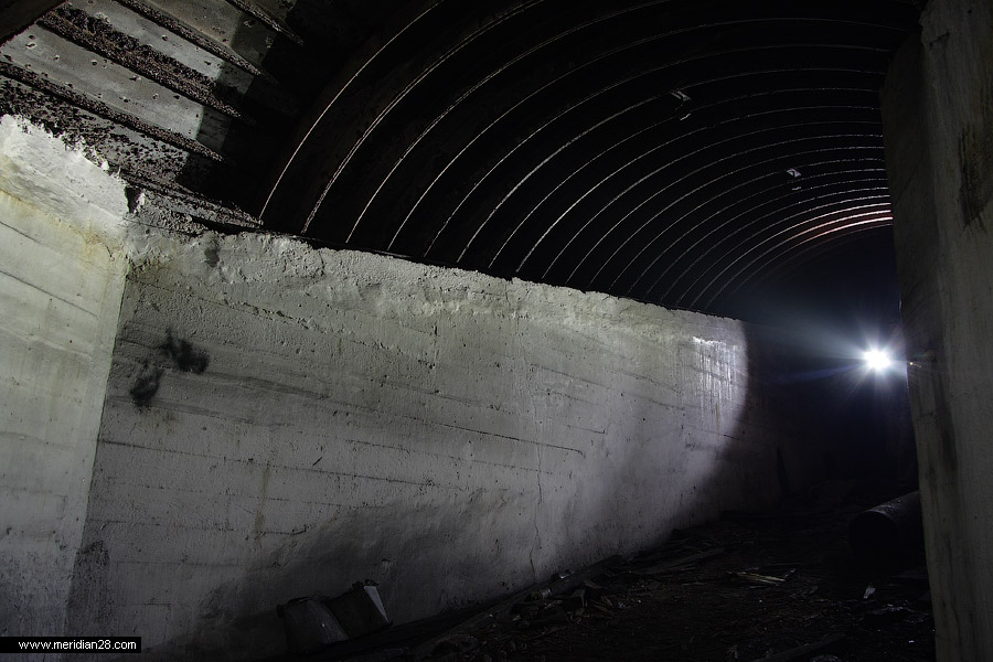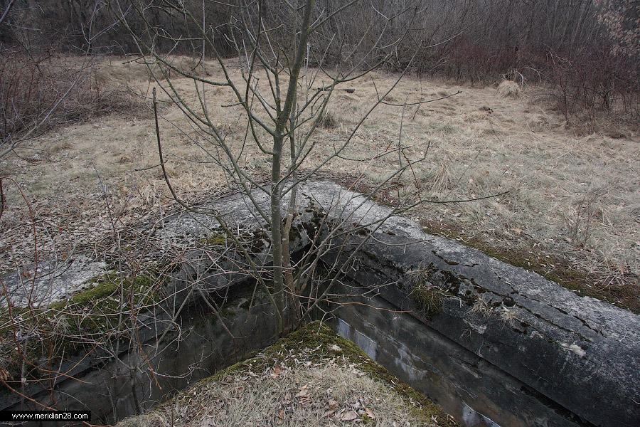 У восточного края галереи-убежища расположен еще один недостроенный кофр. Сегодня он представляет собой бетонную плиту в два метра толщиной, держащуюся на бетонных столбах-опорах, служивших основаниями для стен.