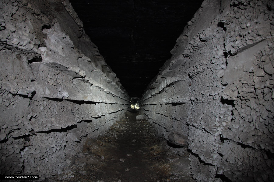 Следующие 50 метров — «глухой» коридор с обскобленными стенами. Если в обычных подземных коридорах и галереях присутствует устойчивое эхо, то здесь звук гасится о стены.