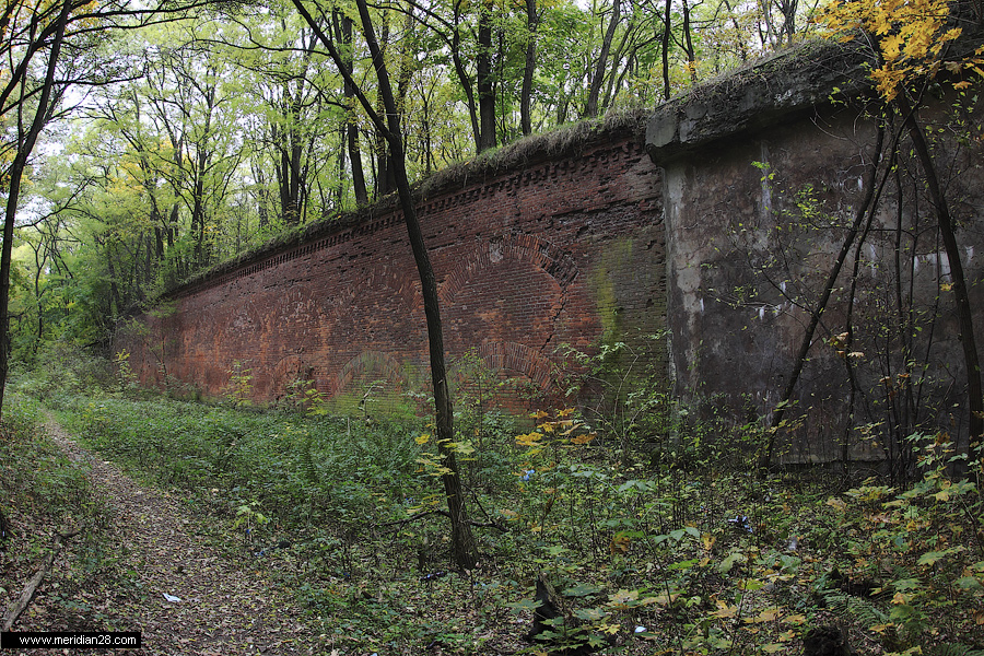 Кирпичная стена контрэскарпа.