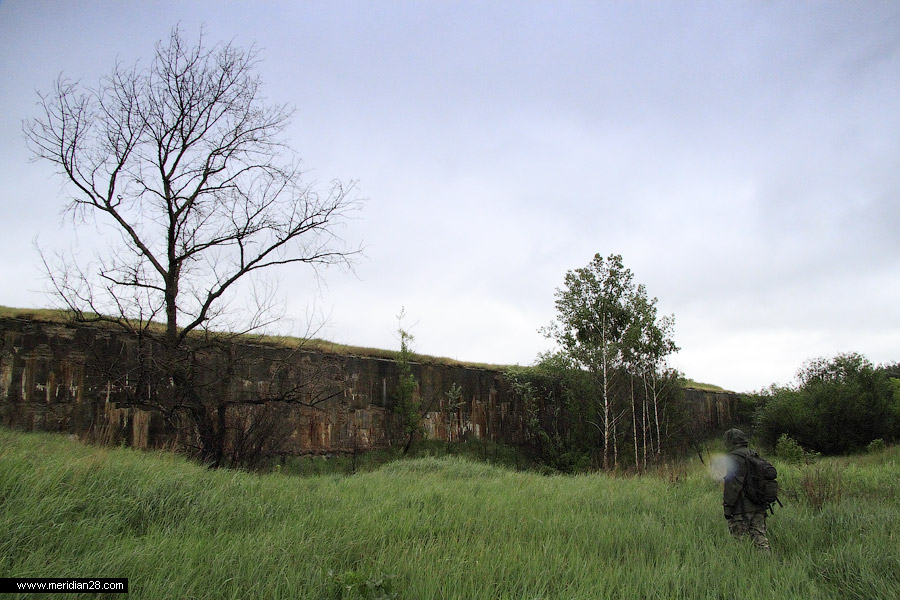 Пройдемся вдоль стены к капониру. Нам нужно найти вход. Вероятнее всего, внутрь удастся попасть через один из боковых входов в капонир, если они не полностью завалены.