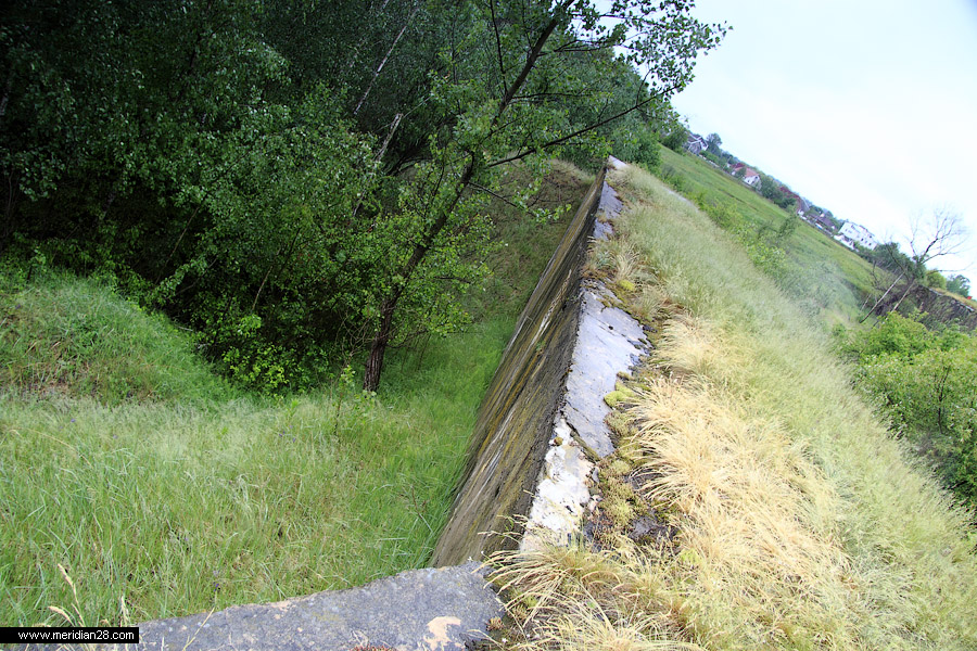 Пройдемся вдоль стены до капонира. Видно, что форт возводился на фундаменте из бутового камня и щебеночно-бетонной смеси.