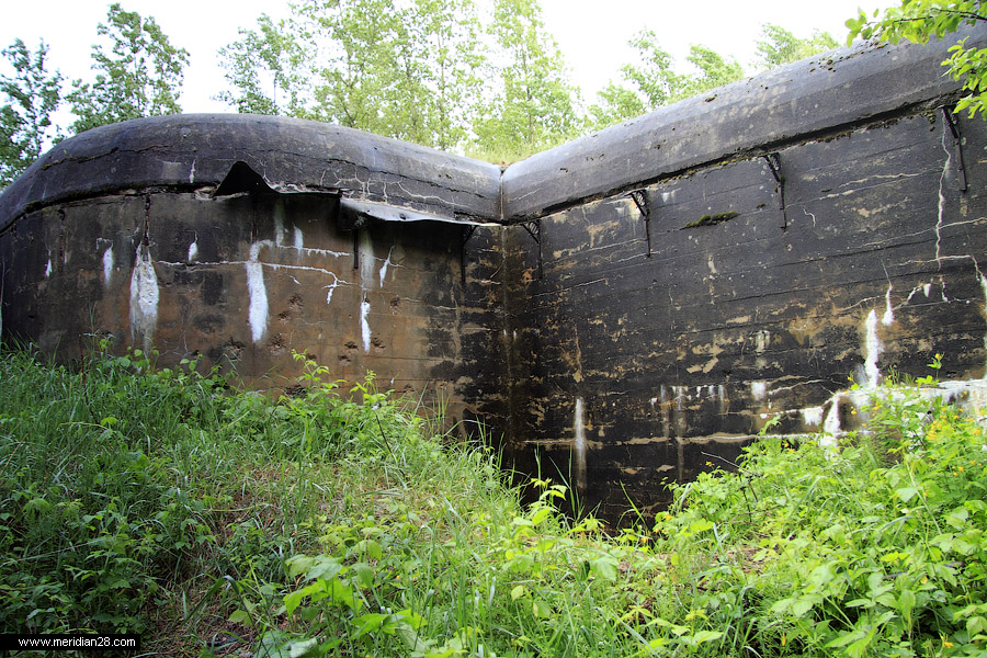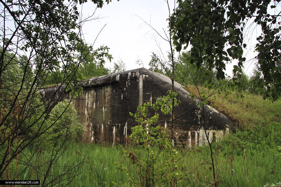 Один из ДОТов (западный) сильно поврежден артиллерийским обстрелом — видимо, он принимал участие в первых боях Великой Отечественной войны летом 1941 года.