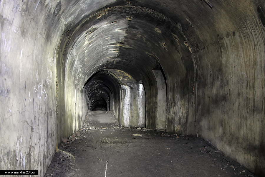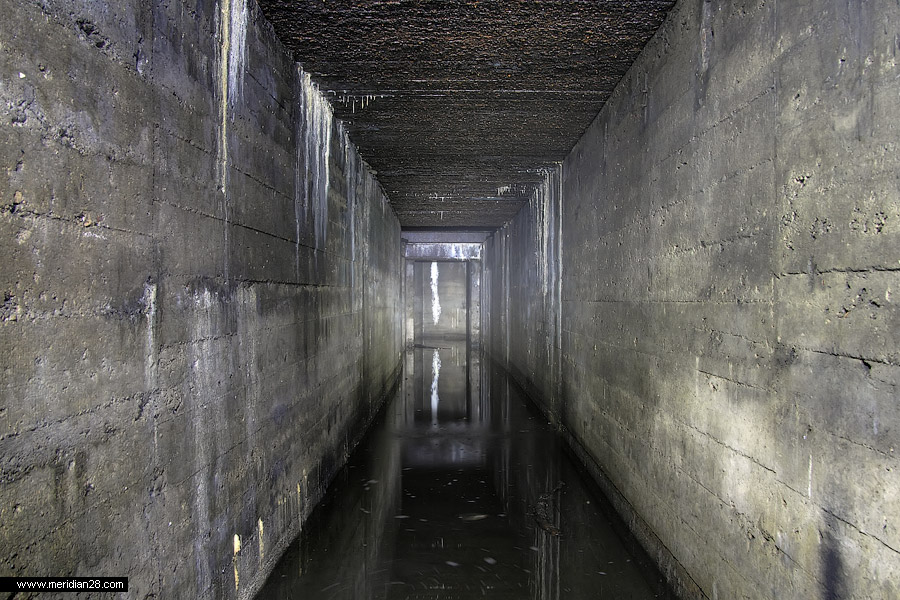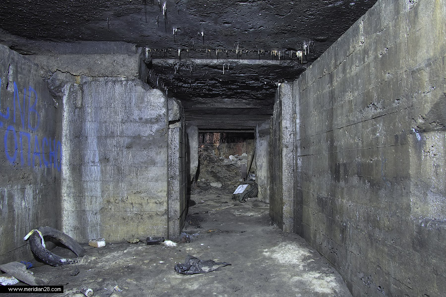 Южная часть галереи представляет собой абсолютно глухую бетонную стену. Северная, где располагались входы, сейчас полностью засыпана землей.
