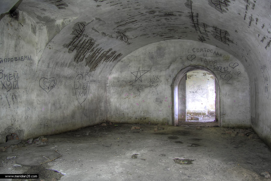 Обратите внимание: в стенах были устроены специальные ниши для керосиновых светильников — электричества в фортах не было. Нам пришлось «включать» внутреннее освещение своими силами.