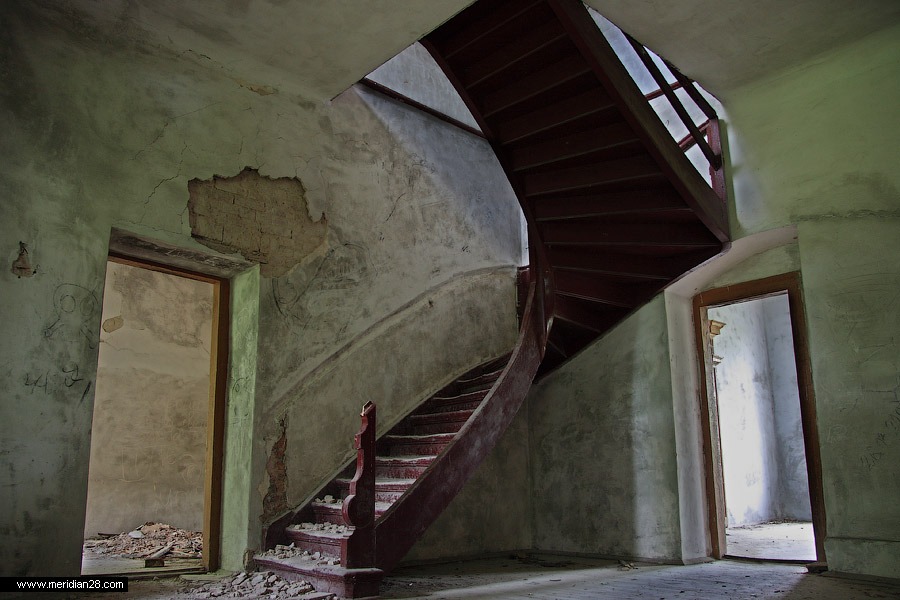 При входе в дом нас встречает одна из самых интересных деталей — лестница. У архитектора определенно был хороший вкус. Вероятнее всего, проектированием этого дома занимался иностранный специалист.