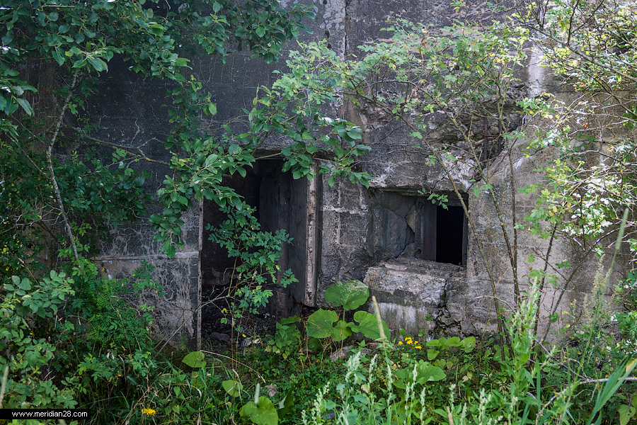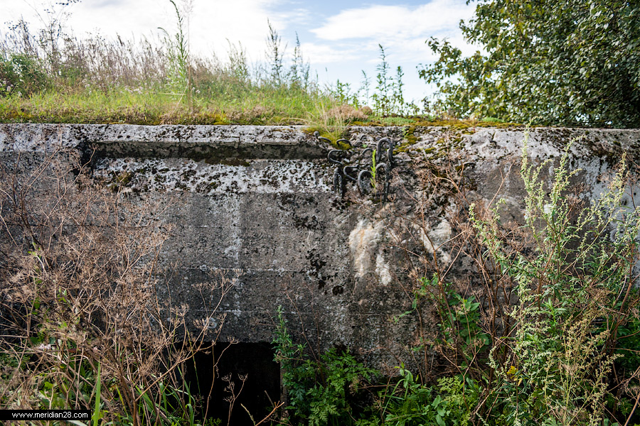 Следующий ДОТ № 11 стоял буквально в двухстах метрах. По строению похож на предыдущие с небольшим различием в планировке лабиринтов. На верху традиционные отверстия для бронеколпаков. Особенностью можно назвать то, что с северо-запада ДОТ закрывал земляной вал.