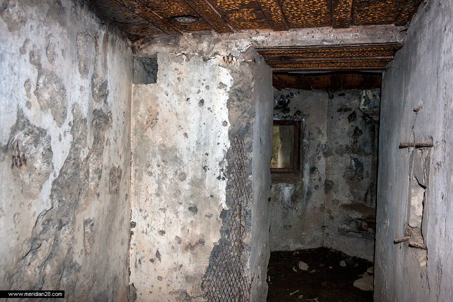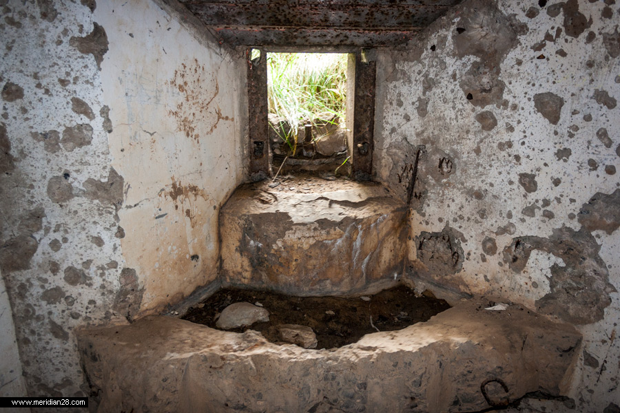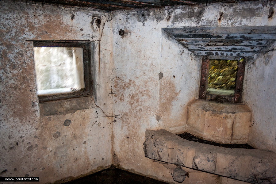 Попасть внутрь огневой точки возможно было только ползком, поскольку её очень сильно засыпало землей. После входа сразу же попадаешь в небольшой сквозник, ведущий в казематы. Устройство амбразур несколько иное, чем у советских точек: ширина проема намного больше. Следует отметить превосходное качество бетонных работ. Даже по прошествии 70 лет бетон выглядит как новый. Внутри можно заметить каркас сетки, которая укрепляла внутреннюю стену.