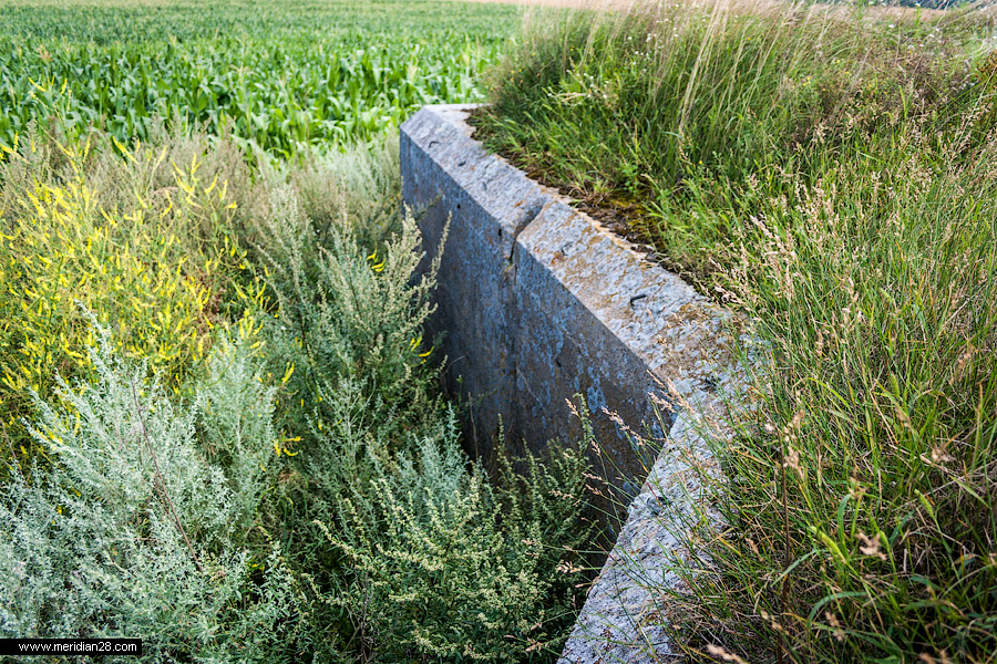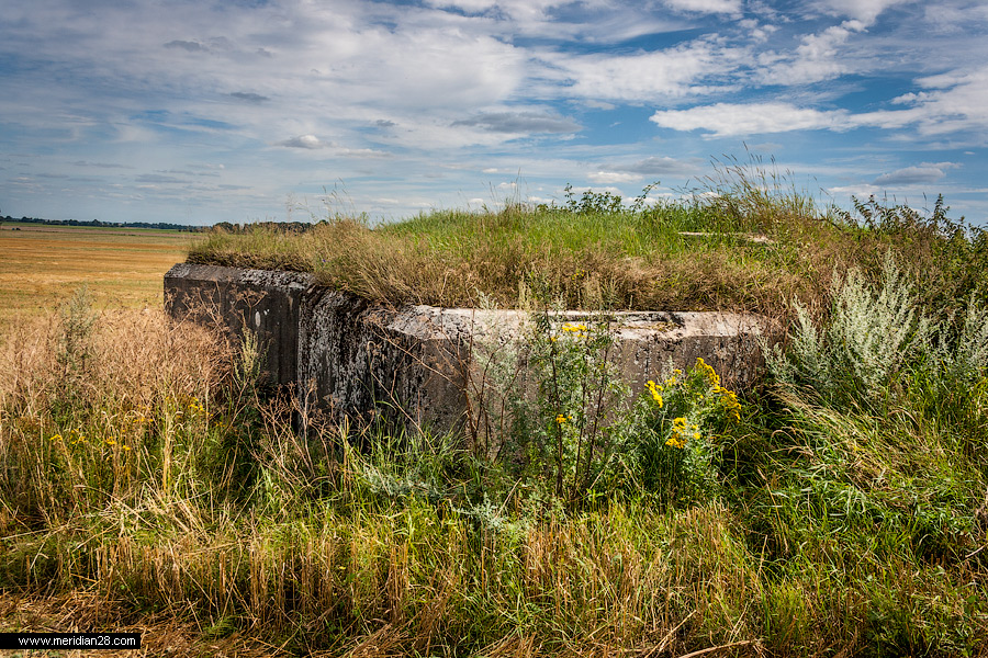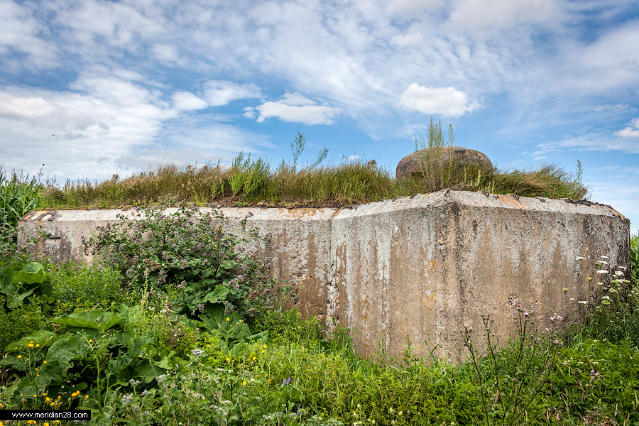 С дороги замечаем следующий ДОТ № 6, в бинокль удается разглядеть на нем целый бронеколпак — это большая удача и поэтому эту точку нужно посетить любой ценой. На поверку это оказалось не так легко: огневая точка находится посреди кукурузного поля — обзор преграждают высокие початки растения. Побродив в кукурузных джунглях, мы все-таки попадаем к искомому месту. Усилия на самом деле стоили результата. Этот ДОТ стал одним из самых интересных за сегодня. Целый бронеколпак и прекрасно сохранившиеся казематы стали нам наградой за долгие поиски. Не испортили впечатлений и уровень воды внутри, и отсутствие удобного входа.