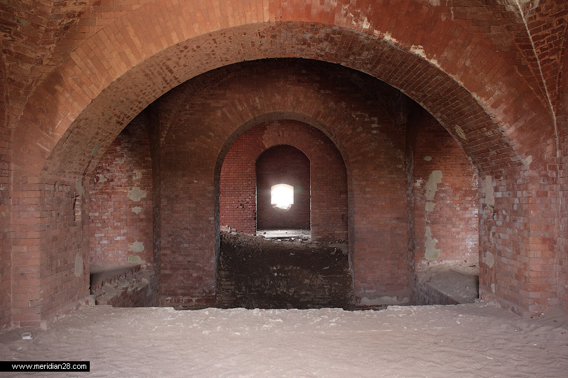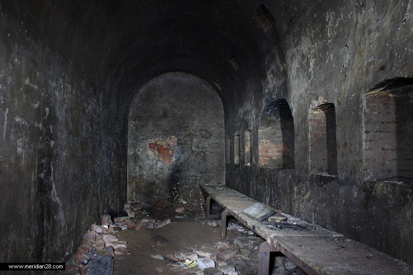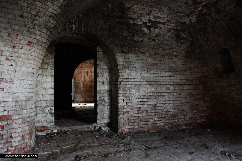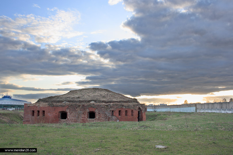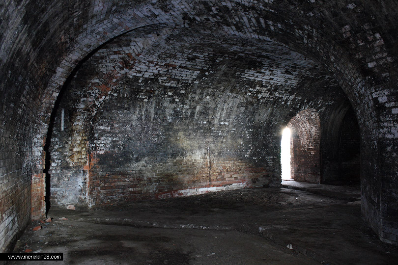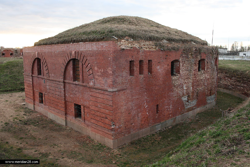 Об истории Бобруйской крепости мы писали в прошлом материале. Итак, продолжаем осмотр с восточного фланга крепости. Редюит правого входящего плацдарма равелина. Вход в сооружение преграждают массивные решетки. Судя по всему, внутри идет реконструкция.