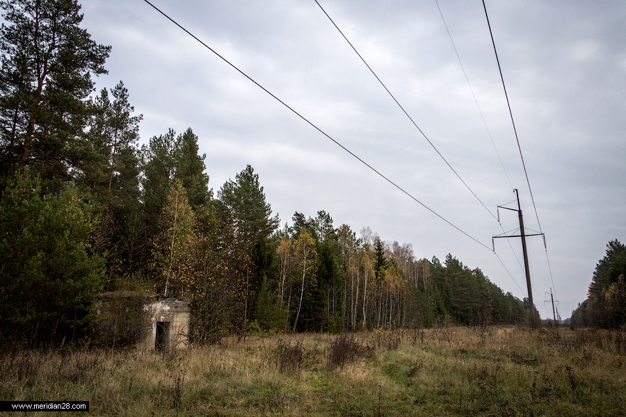 Выйдя на просеку для линий электропередач, мы замечаем одно бетонное сооружение — мы явно наткнулись на какой-то укрепленный участок.