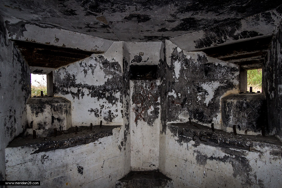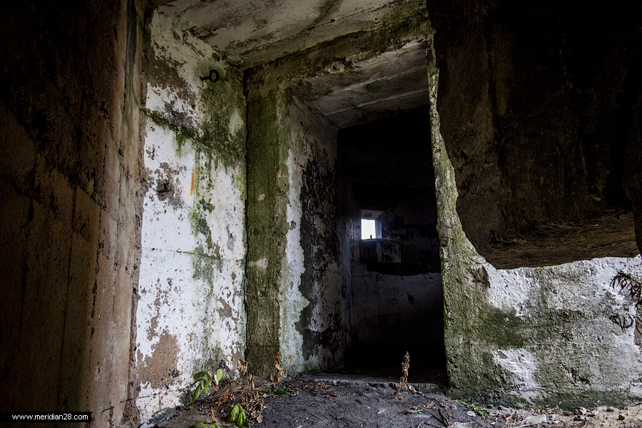 Широкие амбразуры, толстые бетонные стены в форме неправильного многоугольника.