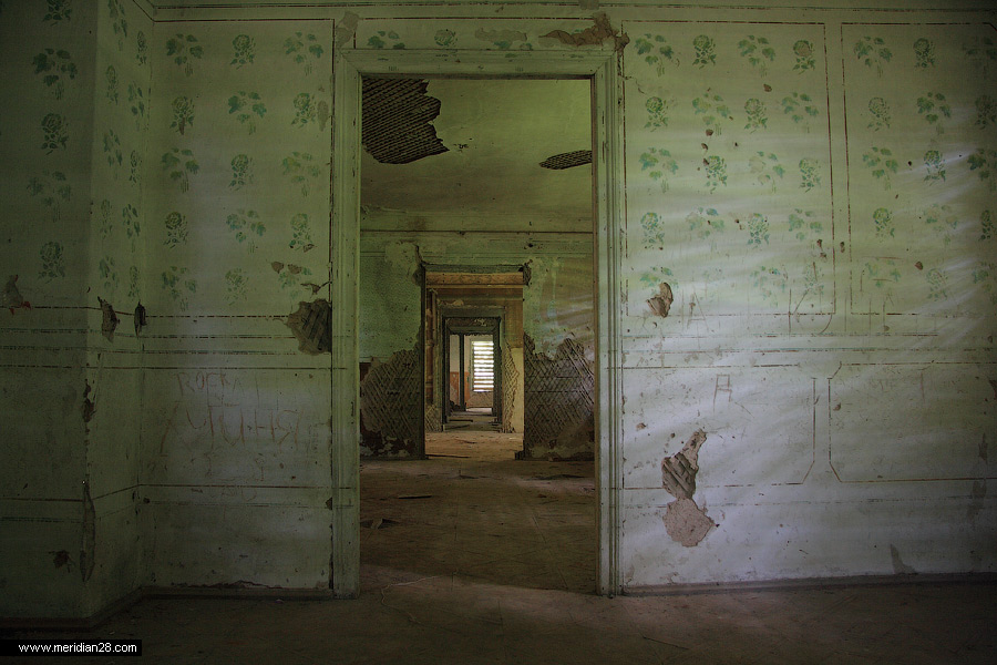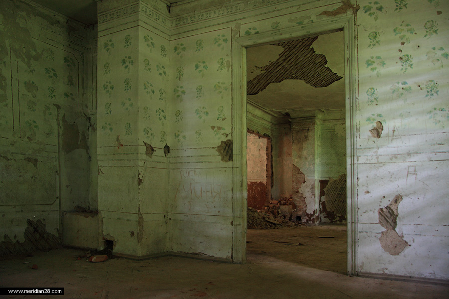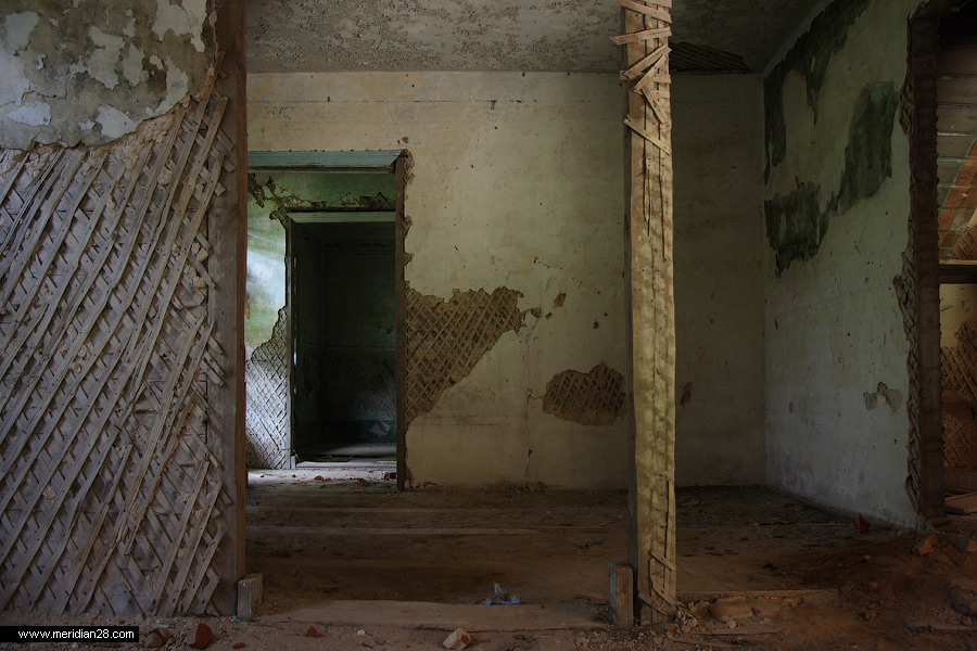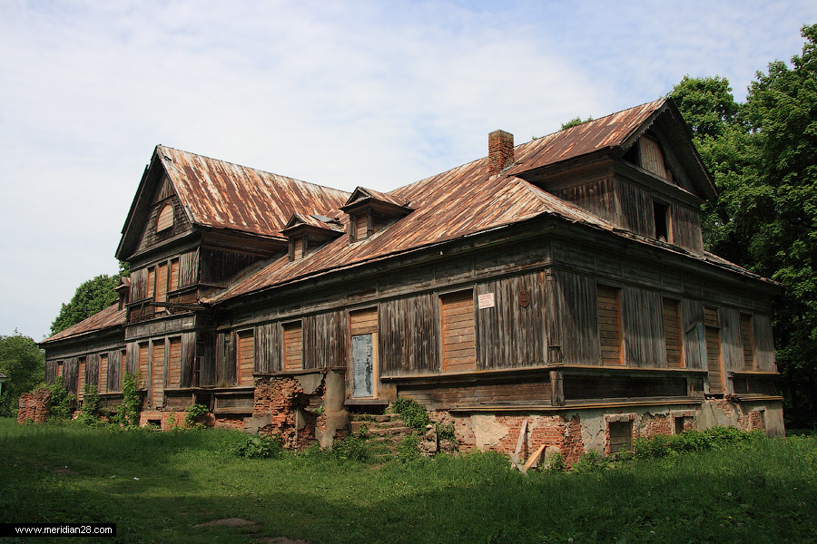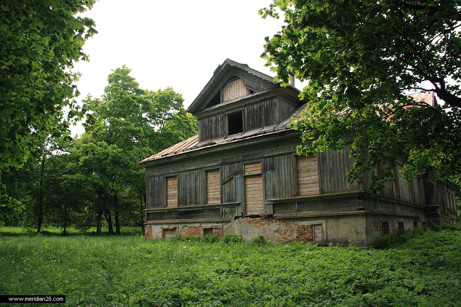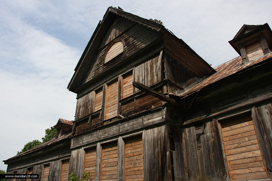 Сейчас у дома достаточно жалкий и запущенный вид. Сама усадьба находится на балансе местного колхоза, со всеми вытекающими последствиями в виде коровников и сараев. Хорошо хоть окна и двери надежно заколочены досками и не пускают внутрь посторонних. Кроме нас, разумеется.