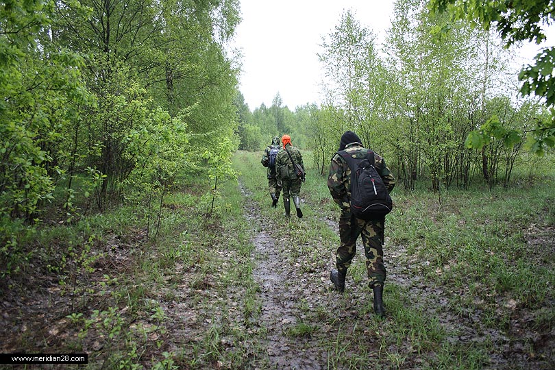 Ранним утром мы выехали в район деревни Птичь, к мине № 232. Лил сильный дождь. Доехав до нужного поворота, пришлось оставить машину — дальше только пешком.