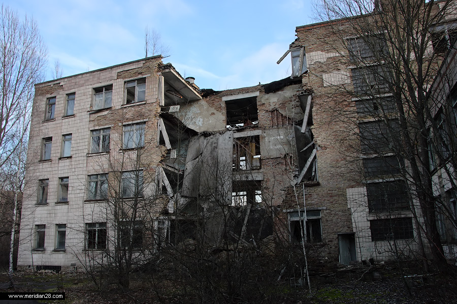 Средняя школа № 1. В 2005 году произошло обрушение конструкции. К слову, многие здания в Припяти находятся в аварийном состоянии.