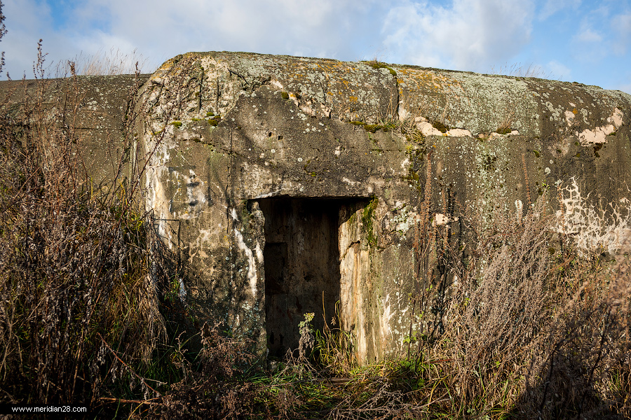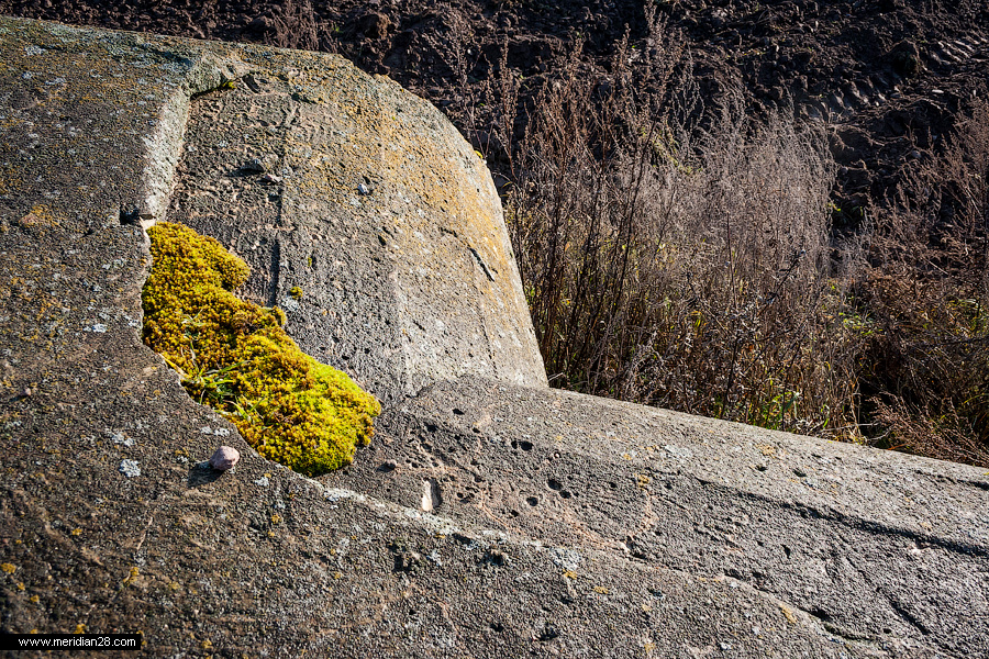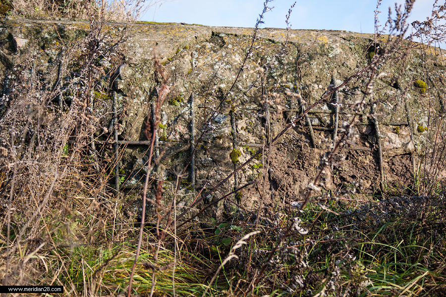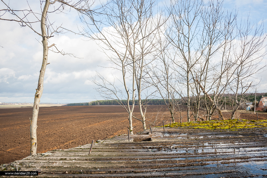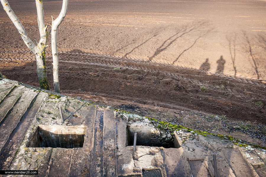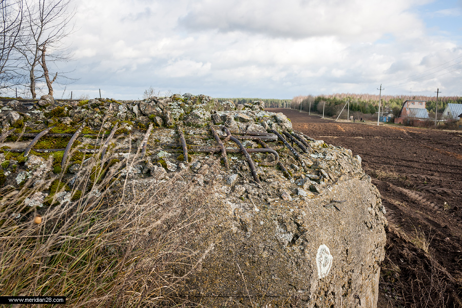 Проезжая через современные дачные участки, выдвигаемся в лесной массив через близлежащее поле. Огневую точку находим вблизи артиллерийского полукапонира. Тип защиты — М-2. ДОТ двухамбразурный, что нечасто встретишь в Минском укрепрайоне.