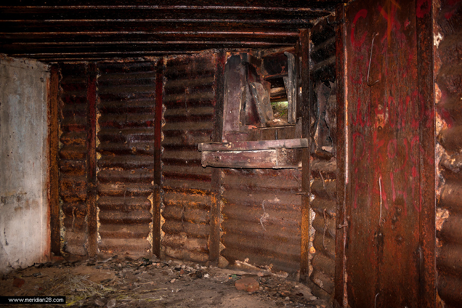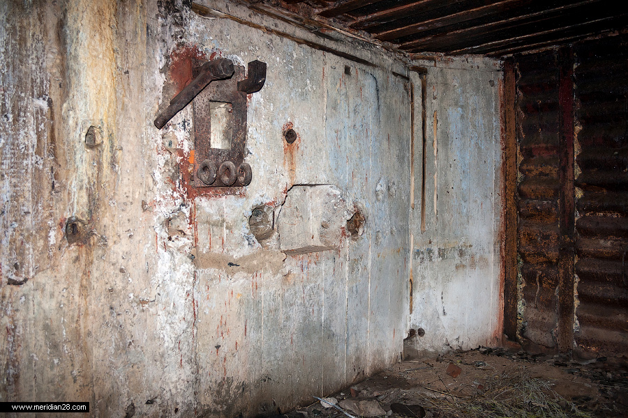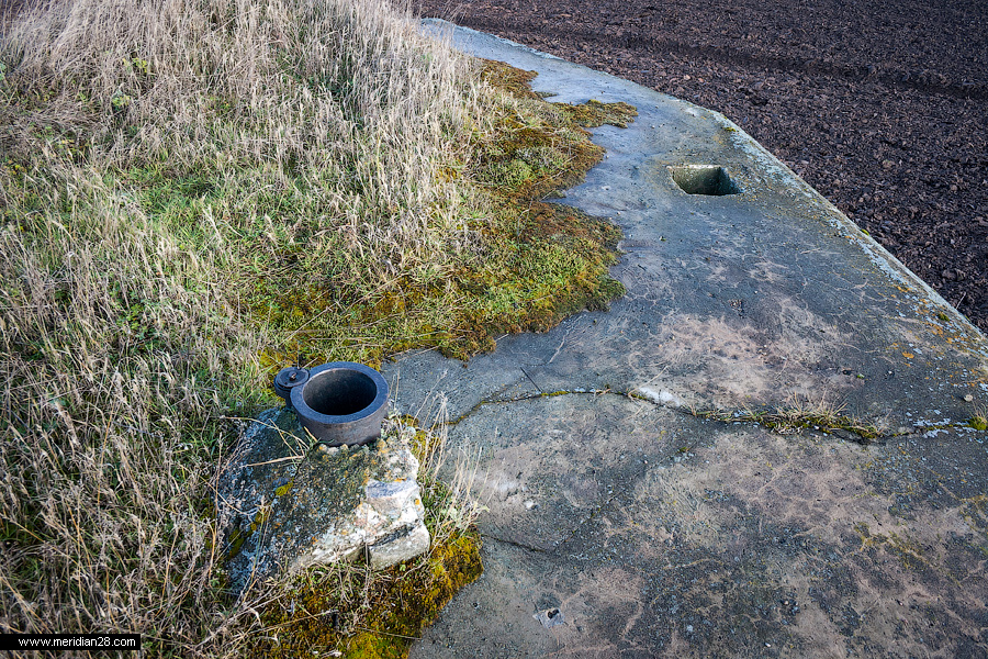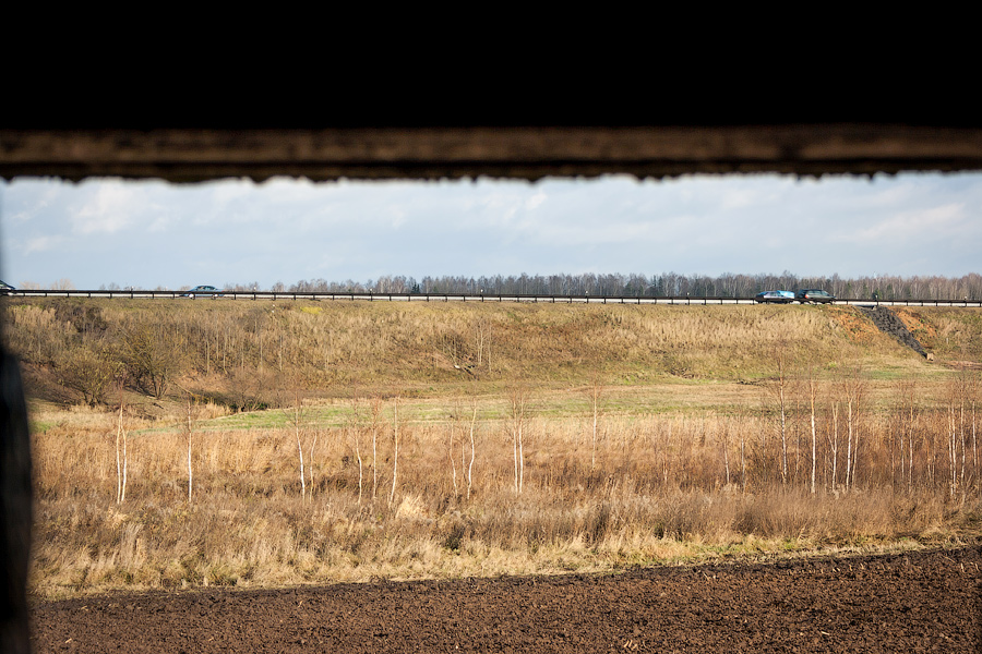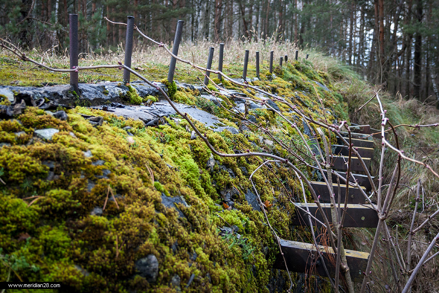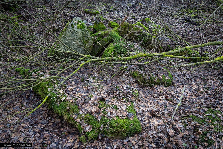 Проезжая через современные дачные участки, выдвигаемся в лесной массив через близлежащее поле. Огневую точку находим вблизи артиллерийского полукапонира. Тип защиты — М-2. ДОТ двухамбразурный, что нечасто встретишь в Минском укрепрайоне.
