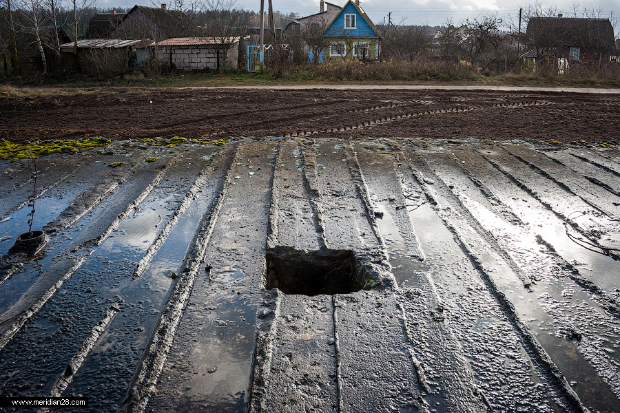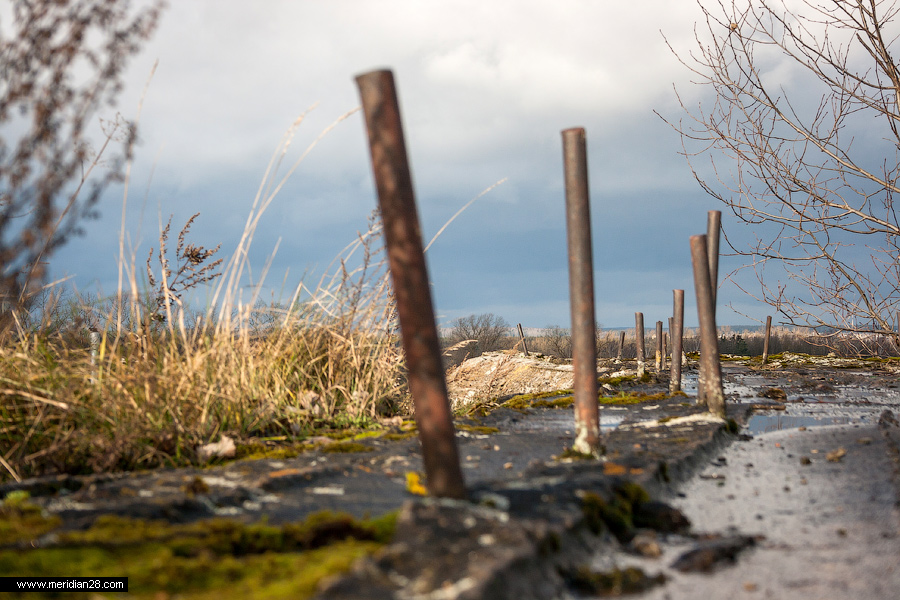Далее направляемся в деревню Клыповщину на поиски ДОТа № 11. Проезжаем железнодорожный переезд и находим огневую точку на участке. Ограничиваемся внешним осмотром ДОТа через забор. Тип защиты ДОТа — М-2.