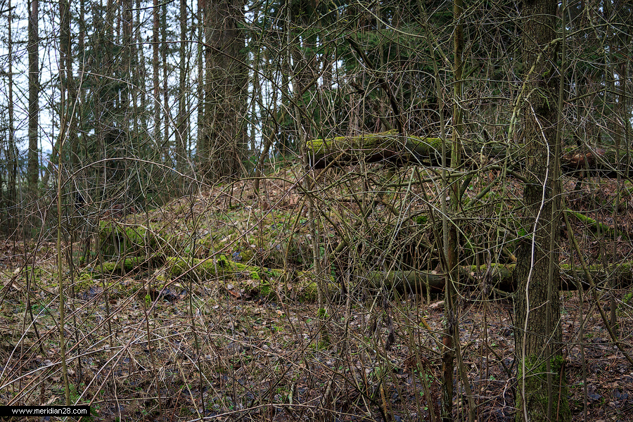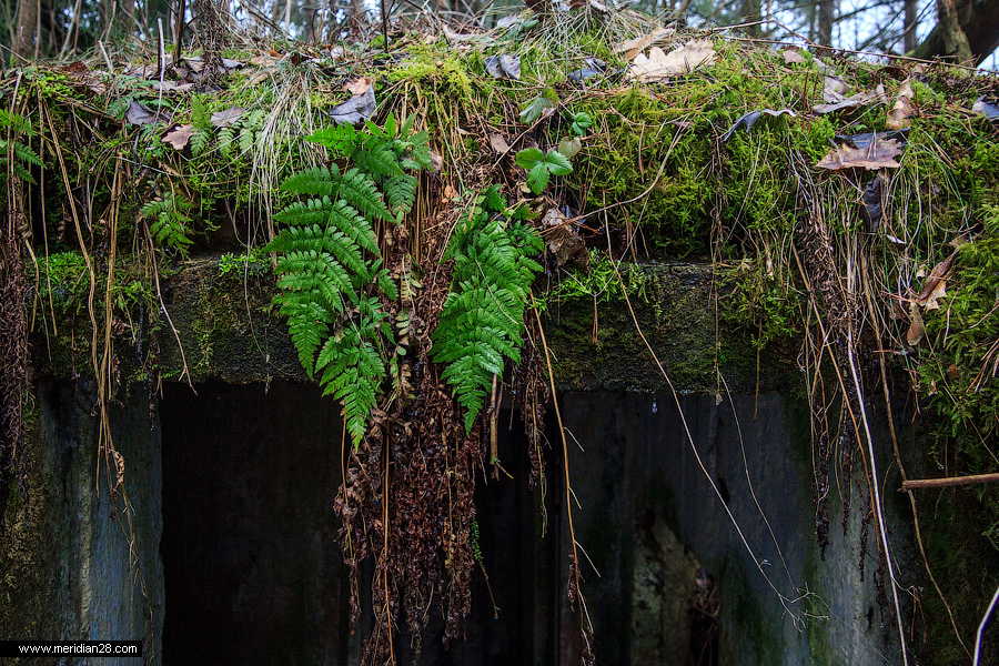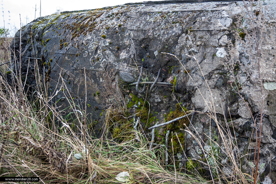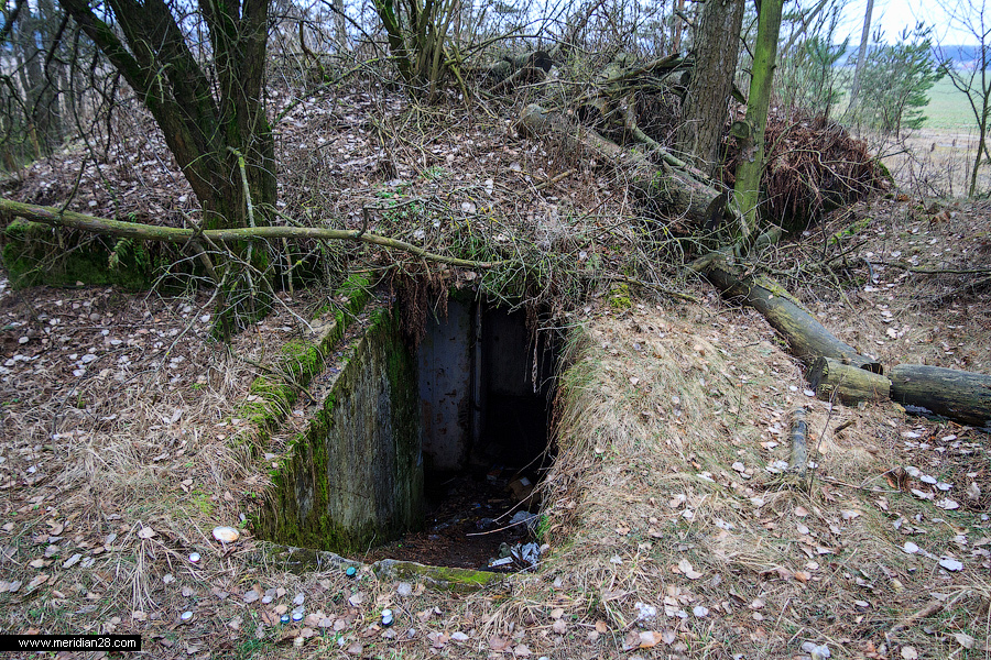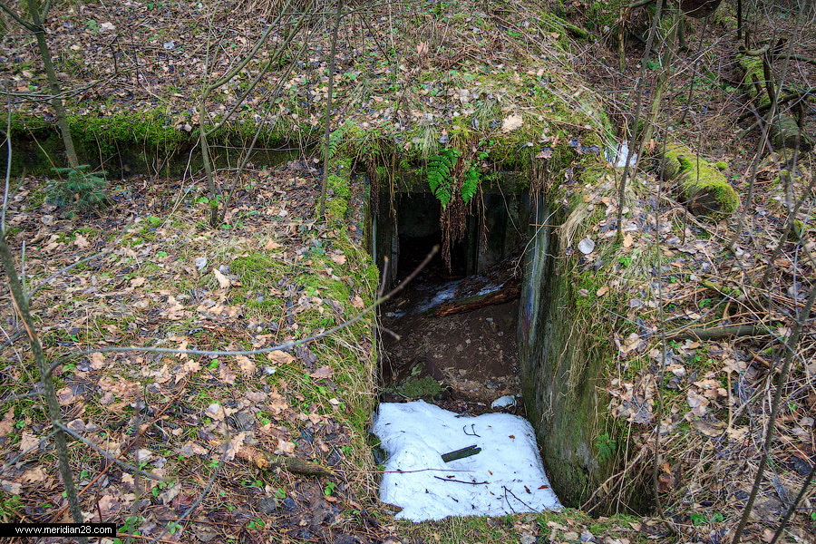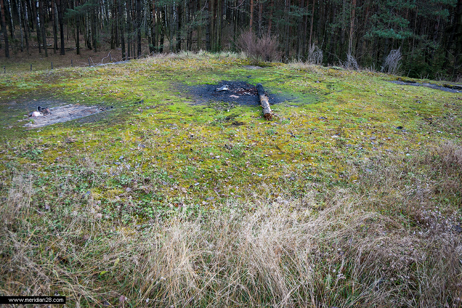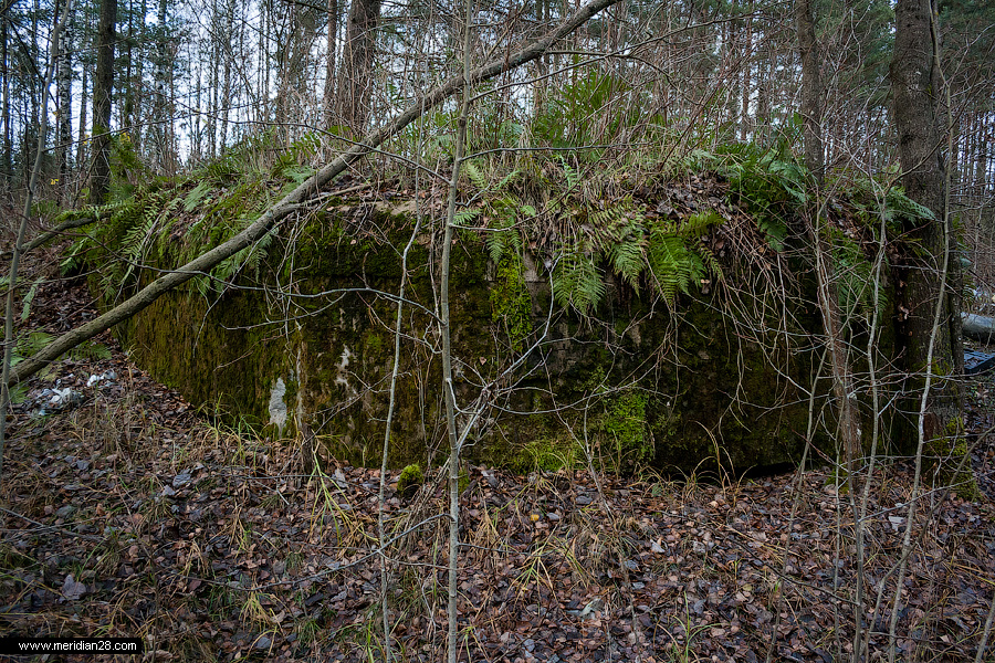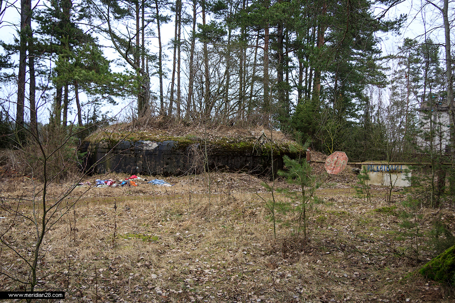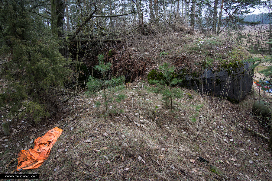 На обратной дороге в лесном массиве среди мусора, прямо возле лесной тропинки, нам удается разглядеть ещё один ДОТ. Это командно-наблюдательный пункт. К сожалению, местные жители превратили его в помойку. Попасть внутрь не представляется возможным.