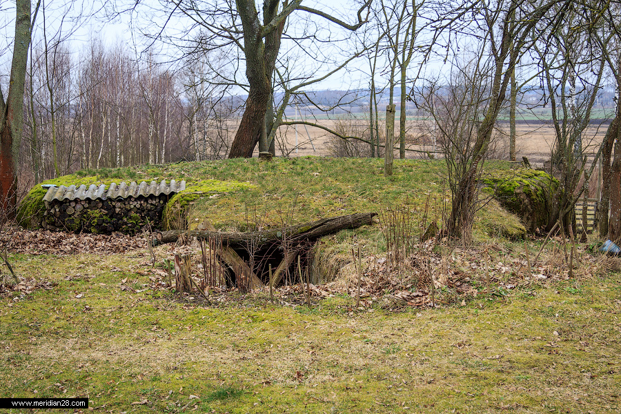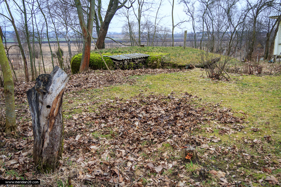 Далее двигаемся в сторону деревни Безодница (соседствует с Клыповщиной) на поиск артиллерийского полукапонира (АПК), построенного в рамках доусиления. Огневая точка засыпана землей со всех сторон, кроме входа.