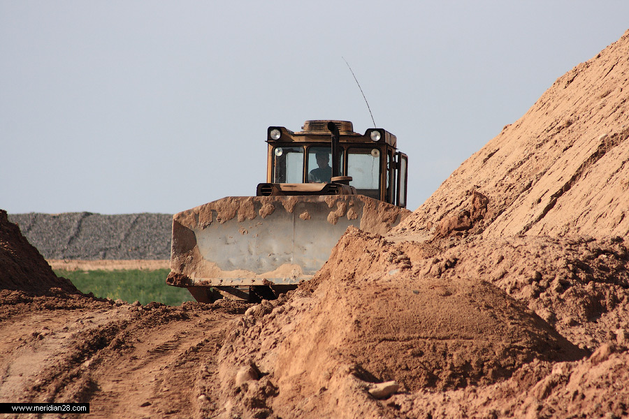 Солеотвалы рудоуправления «Калий-2». Тут постоянно кипит работа. Бульдозер делает насыпь нового шламохранилища — места складирования отходов бурения: отработанных растворов, измельченной горной породы, глины, воды и различных химических реагентов.