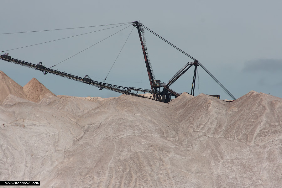 Солеотвалы и работающая техника.