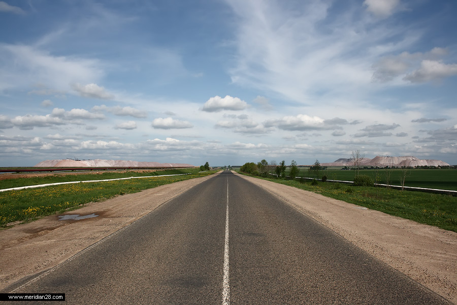 Дорога к терриконам. Слева отвалы рудоуправления «Калий-3», а справа «Калий-1».