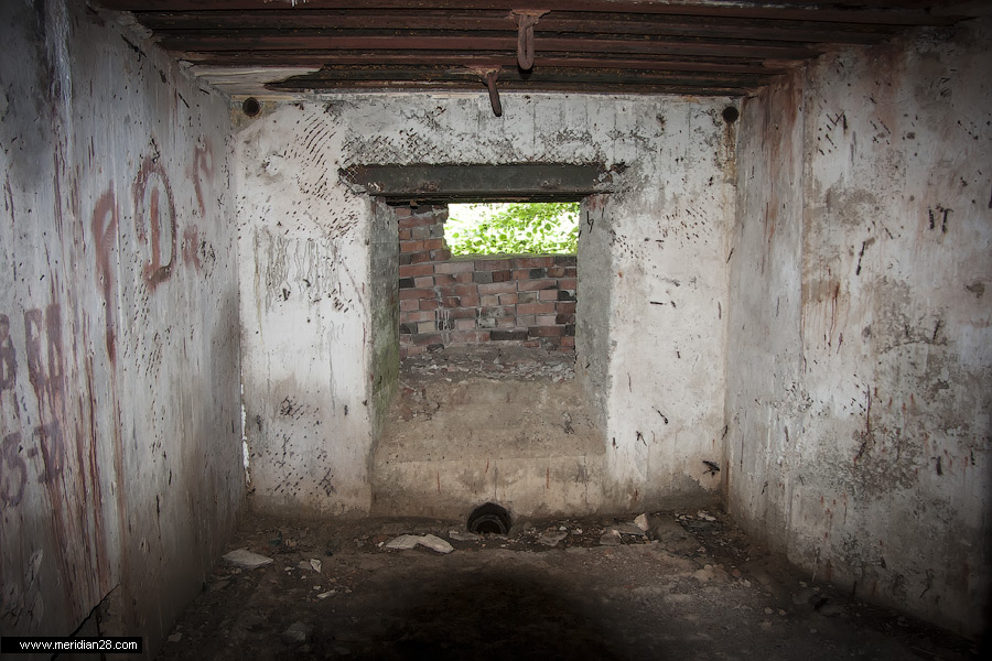 Пулеметный полукапонир не делился на казематы. Обе амбразуры были в одном помещении, что кажется нам не очень разумным.
