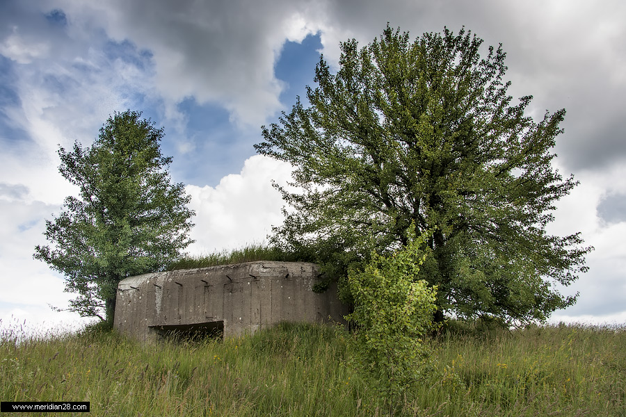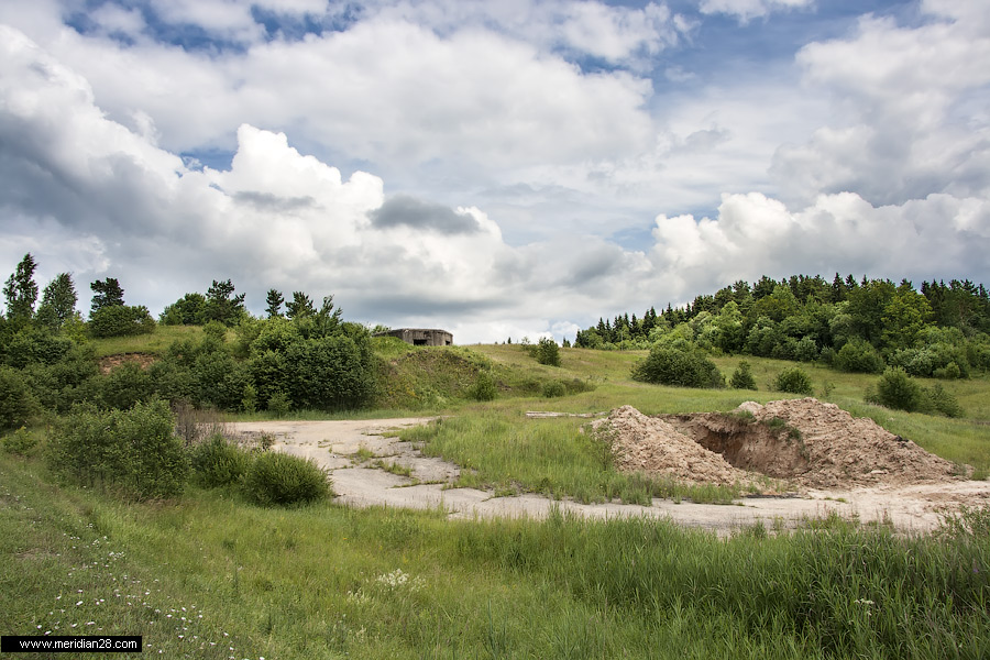 Дальше двигаемся по шоссе. На склоне холма замечаем пулеметный полукапонир.