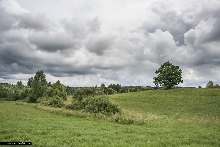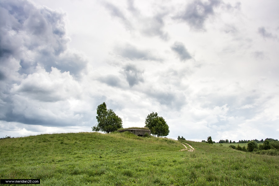 Погода была самая подходящая: гроза прошла стороной и уже ничего не мешало комфортному перемещению по району поисков. Основная часть сооружений опорного пункта сконцентрирована в поле на холмах к юго-западу от поселка Ветрино. 70 лет назад здесь не было большого количества деревьев и кустов, препятствующих обзору, и железная дорога вместе с шоссе должны были очень хорошо просматриваться.