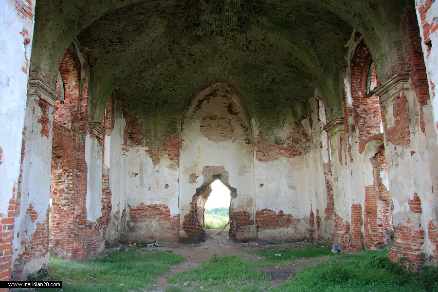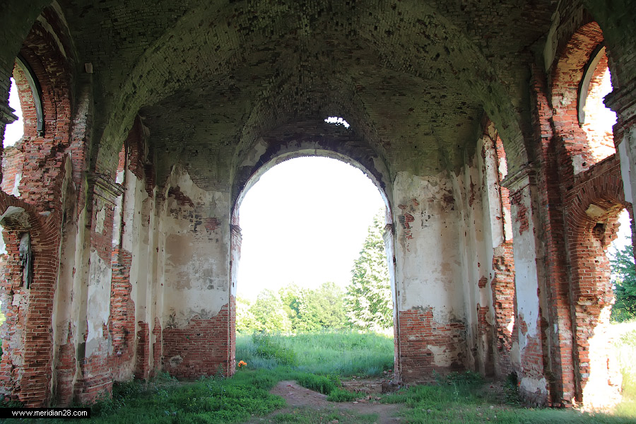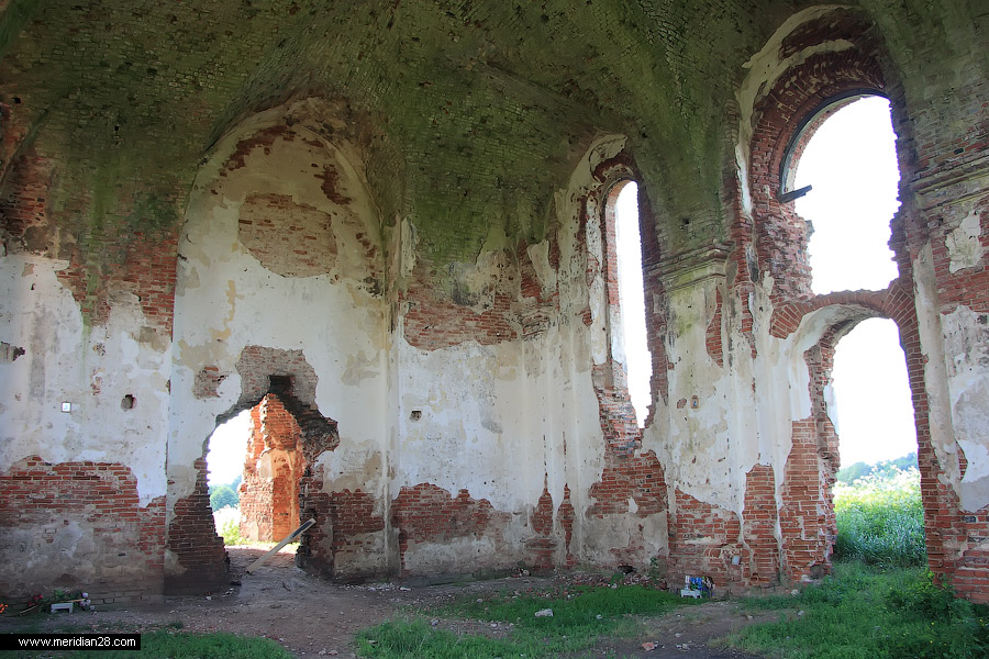 К сожалению, оформление интерьера не сохранилось — церковь серьезно пострадала в