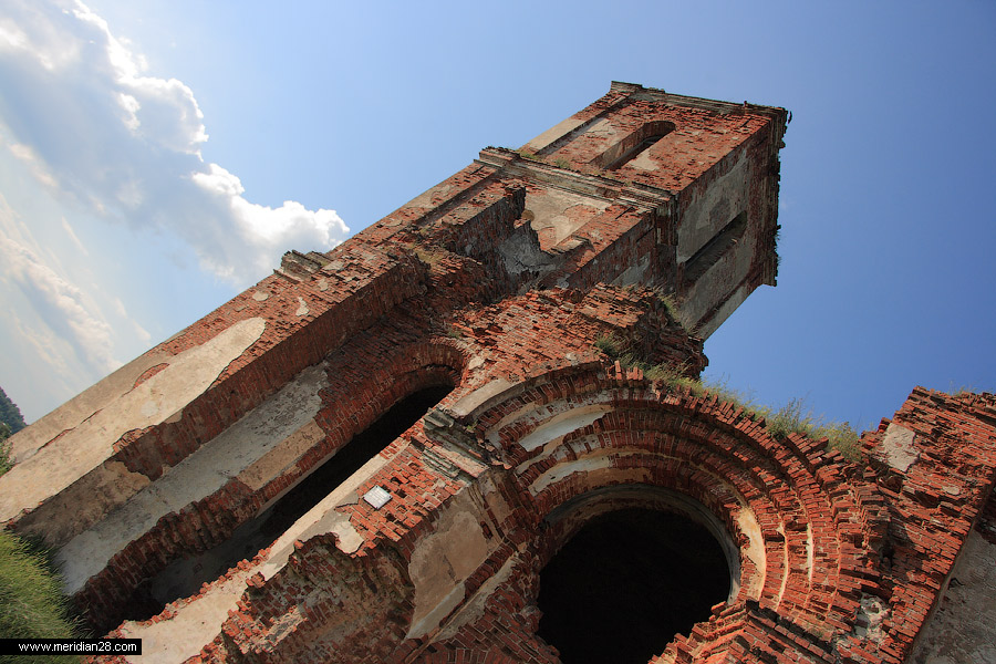 Высокая трехъярусная квадратная в плане башня-звонница доминирует над остальными объемами храма. Она расчленена на отдельные ярусы карнизными поясами и пилястрами.